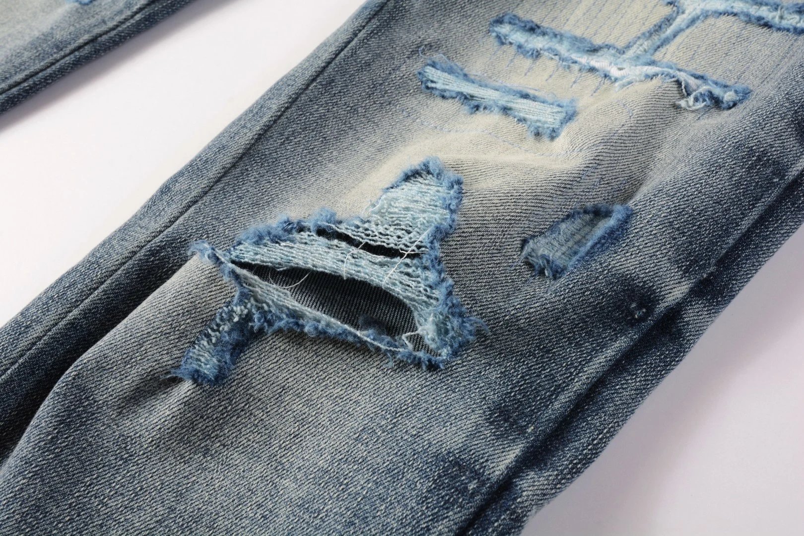 AMIRI Retro Distressed Slim Jeans feature patch logo, ripped details & washed finish for American street style.