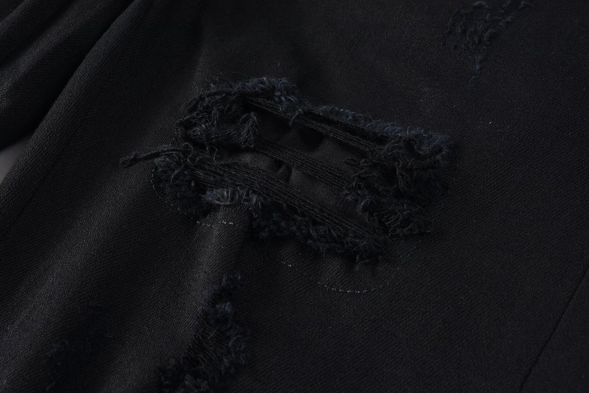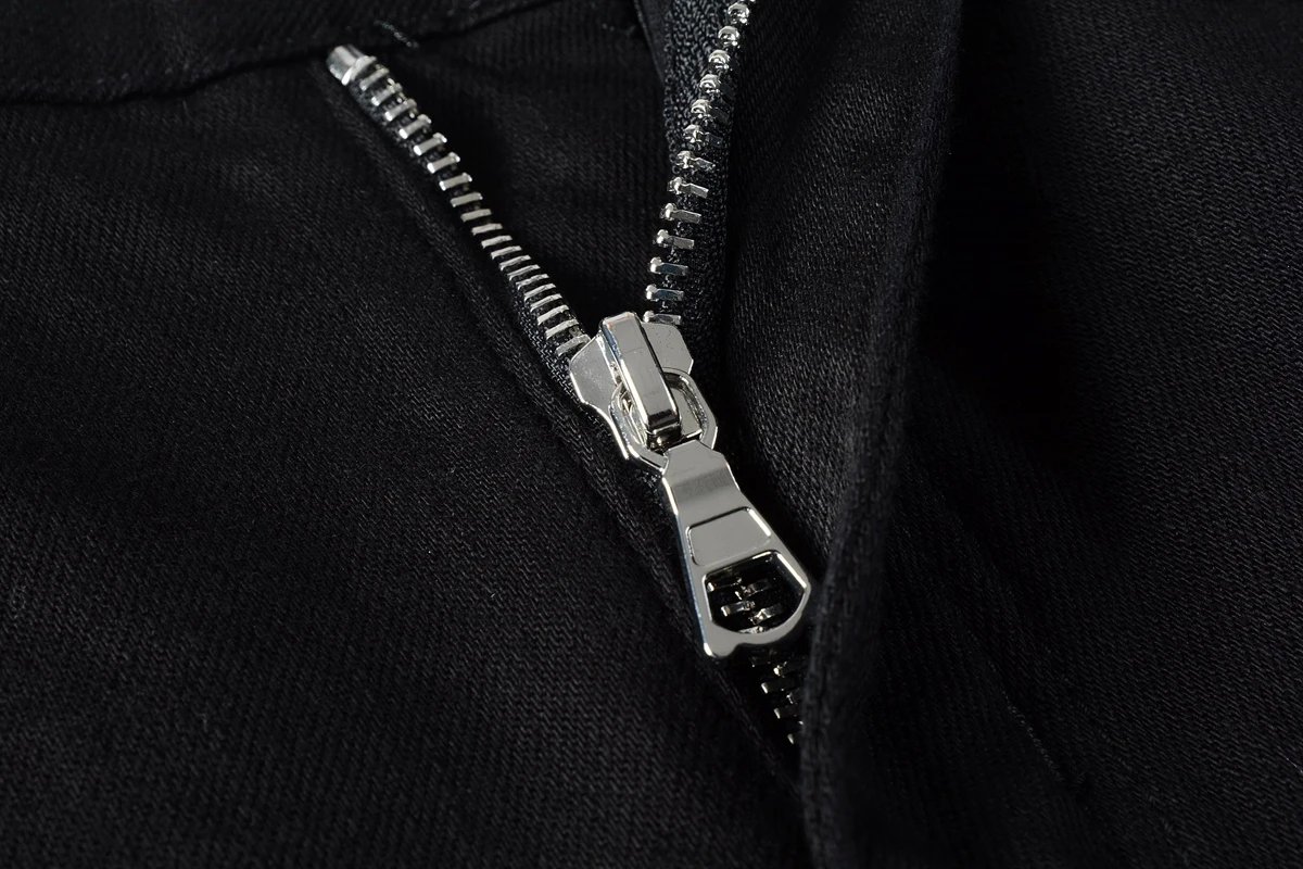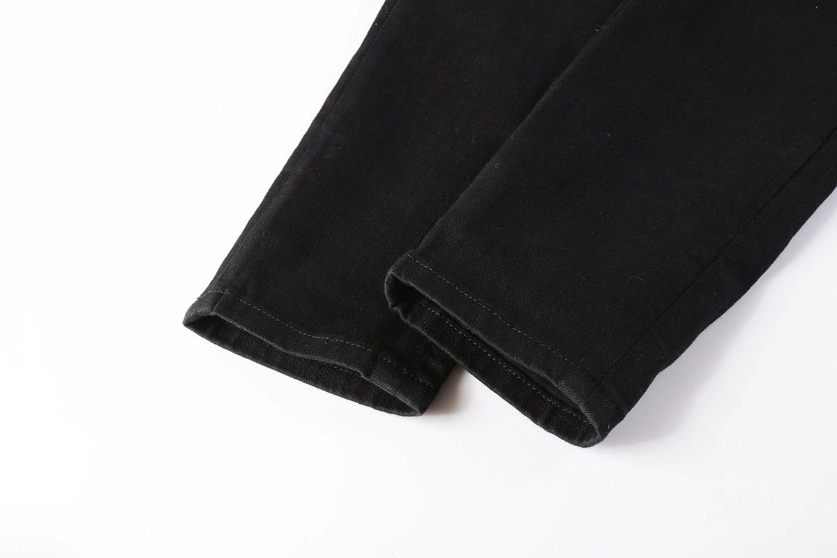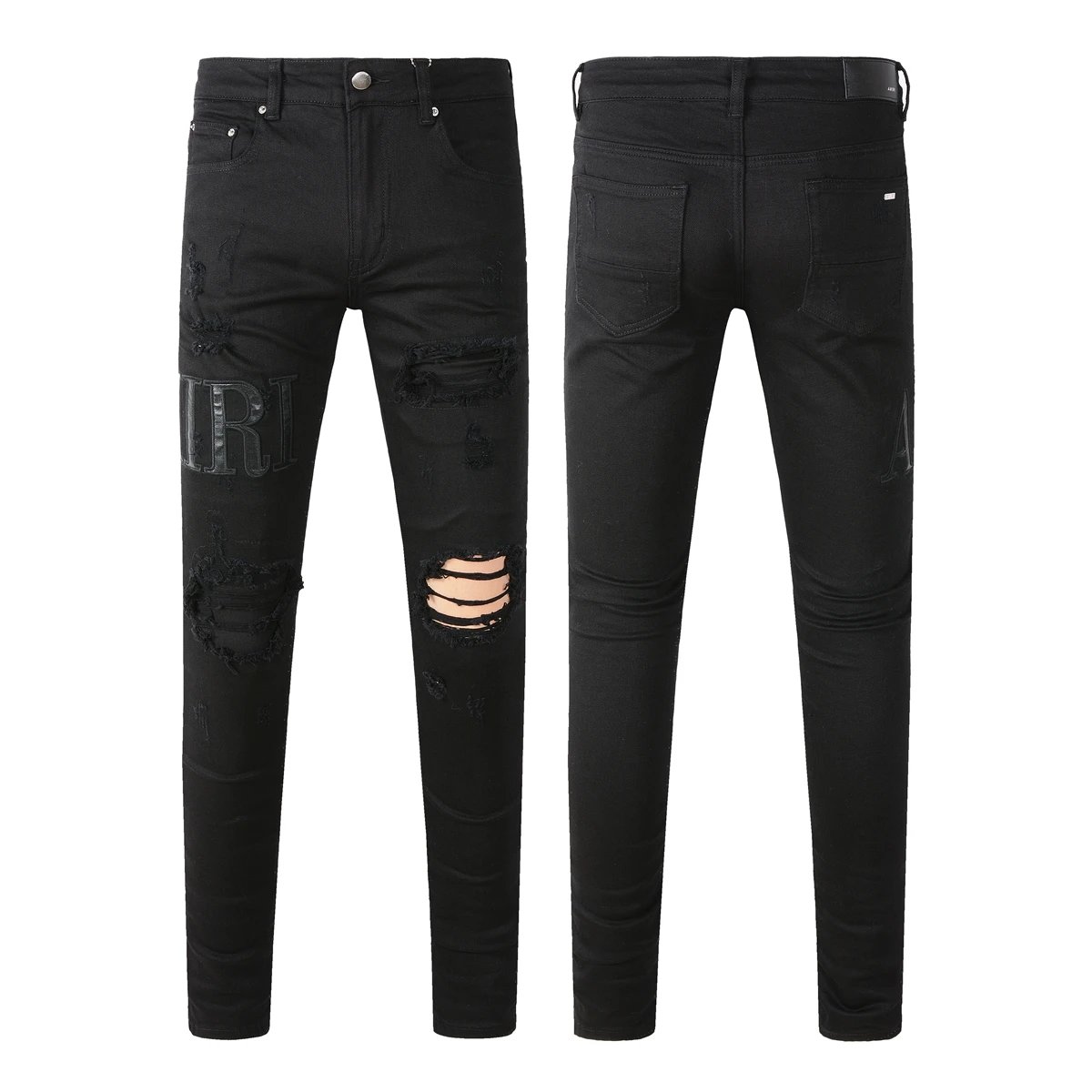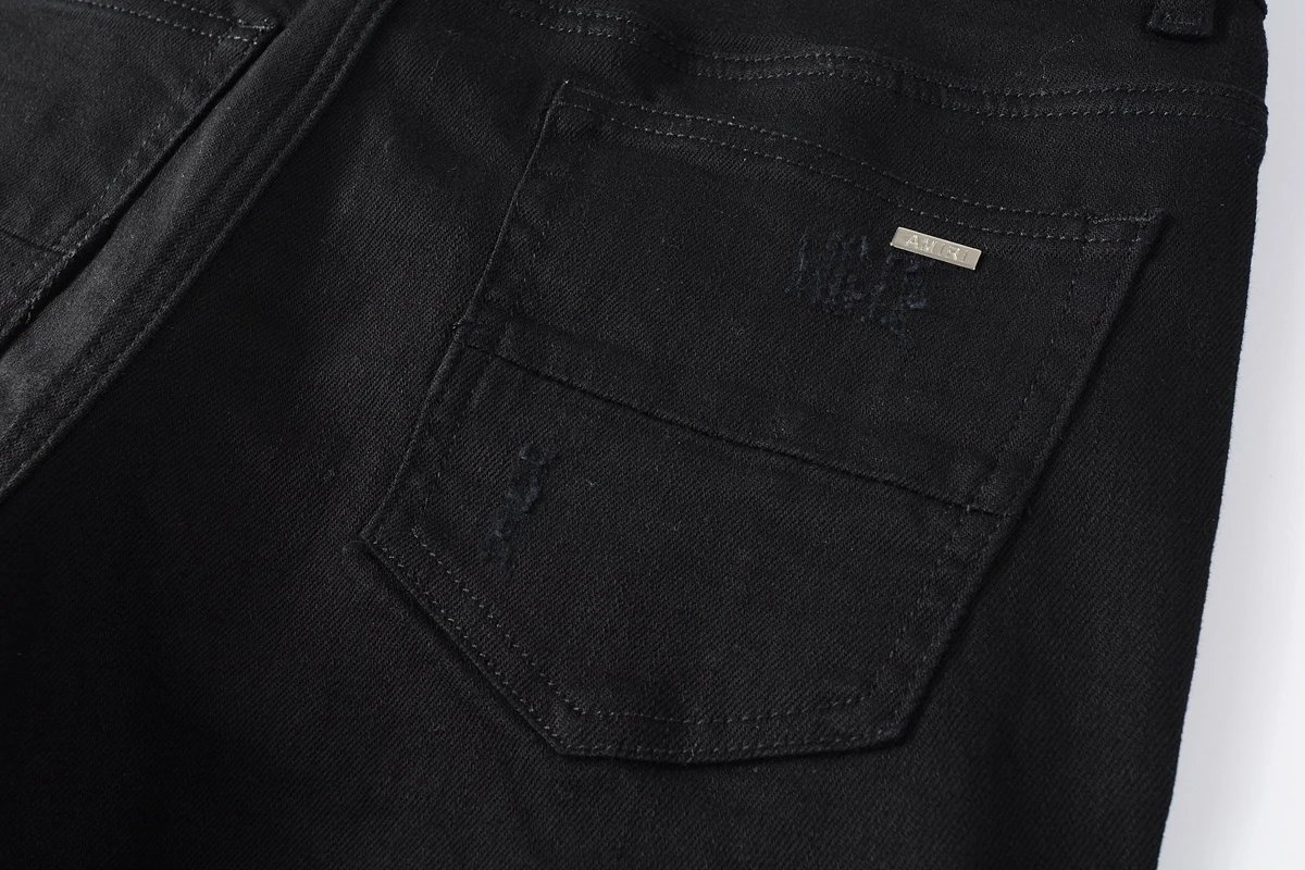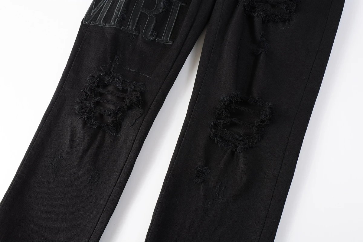 AMIRI Top Foreign Trade Version Black Distressed Patch Logo Leather Slim Fit Jeans