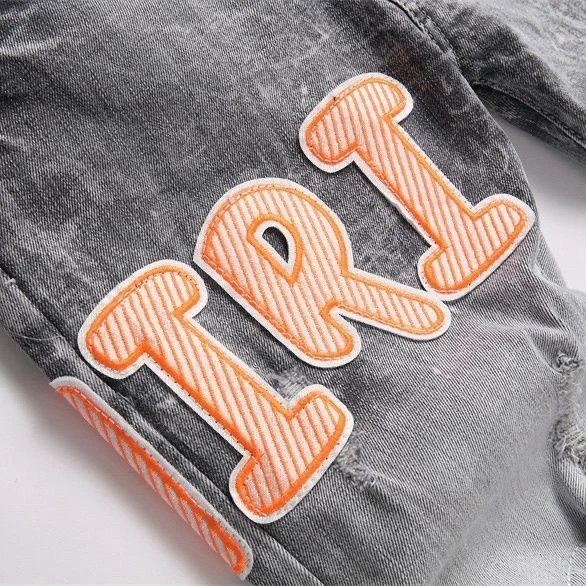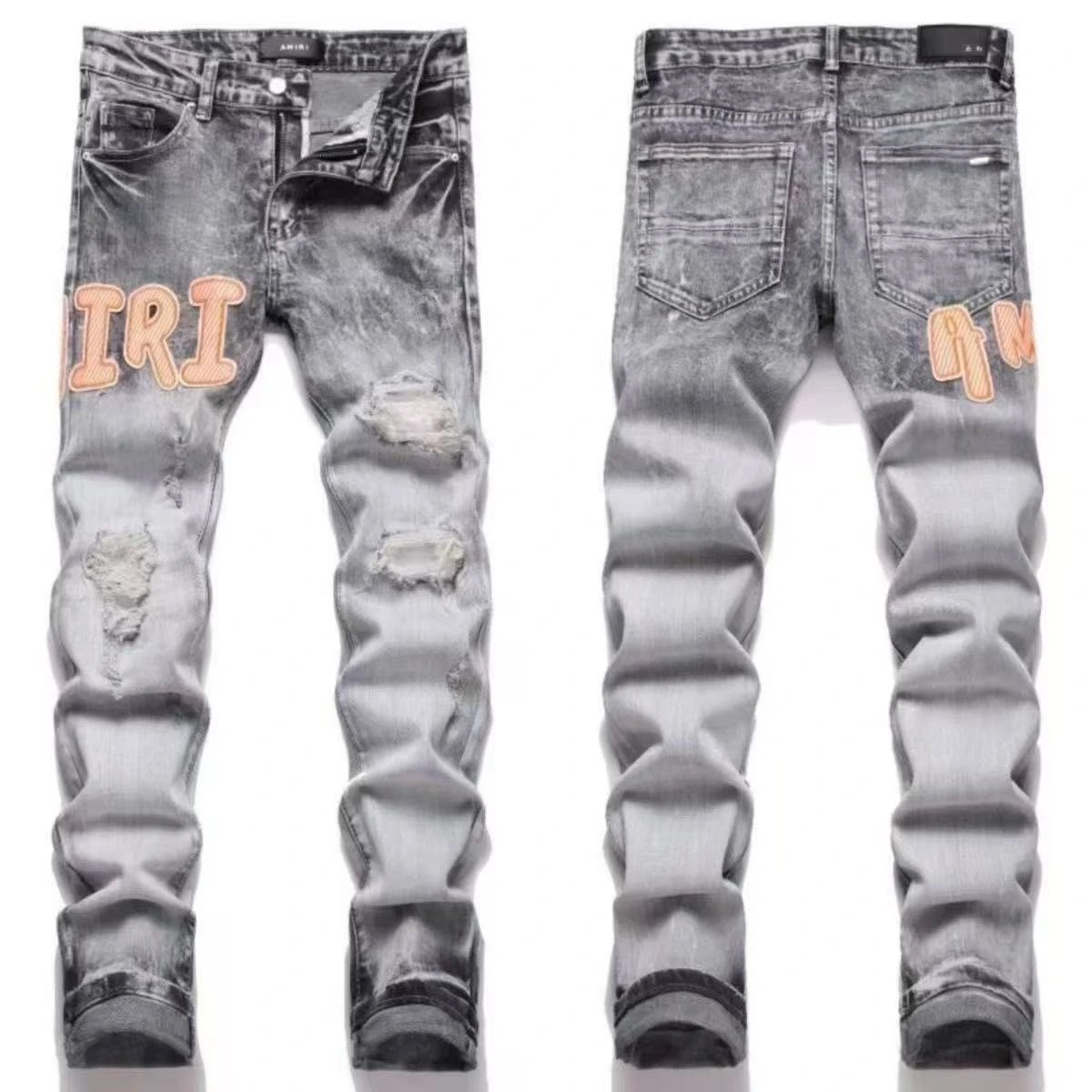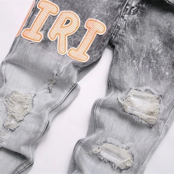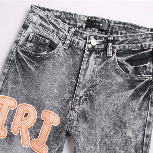 AMIRI #M17 Embroidered Patch Ripped Skinny Stretch Jeans use soft, comfortable fabric with innovative craftsmanship.