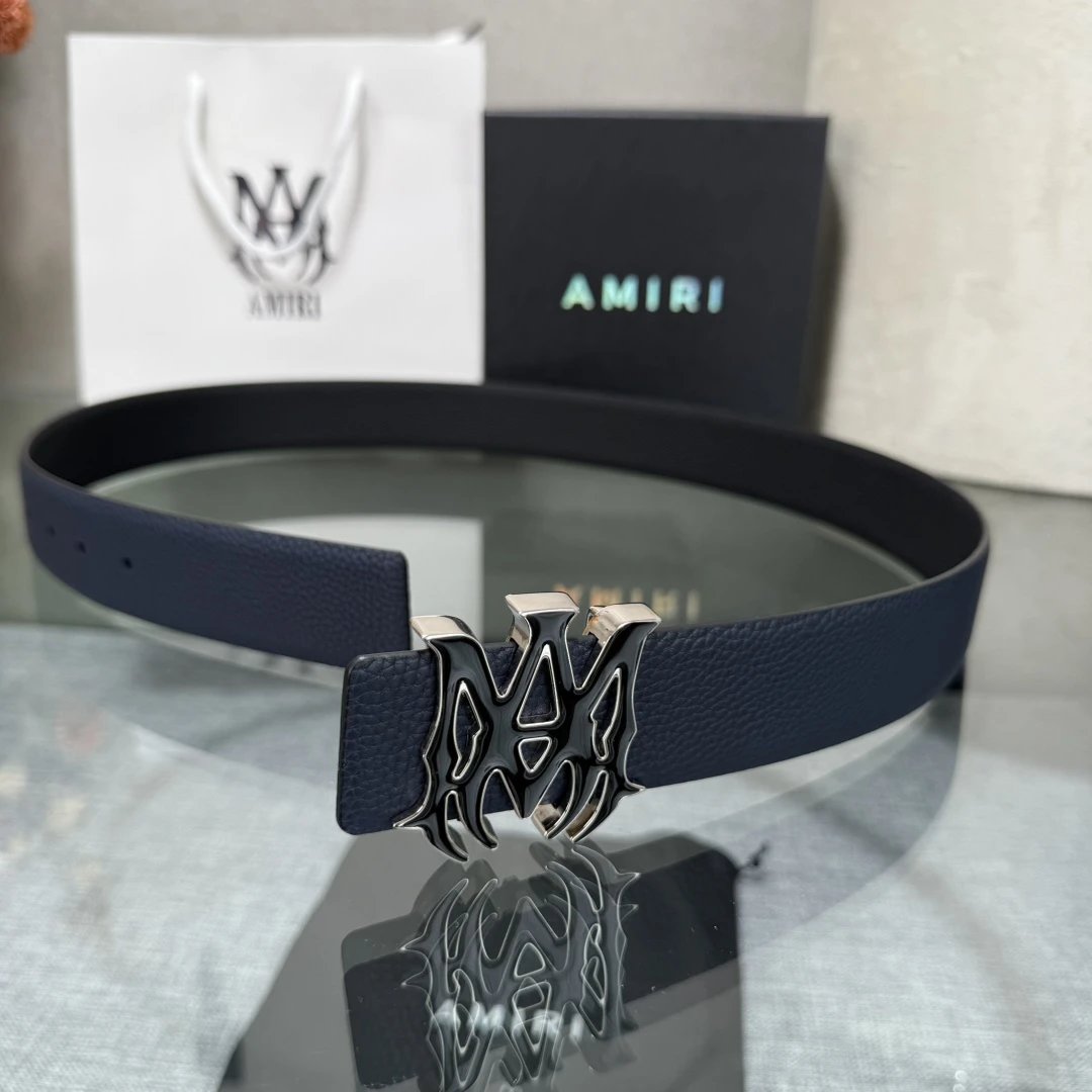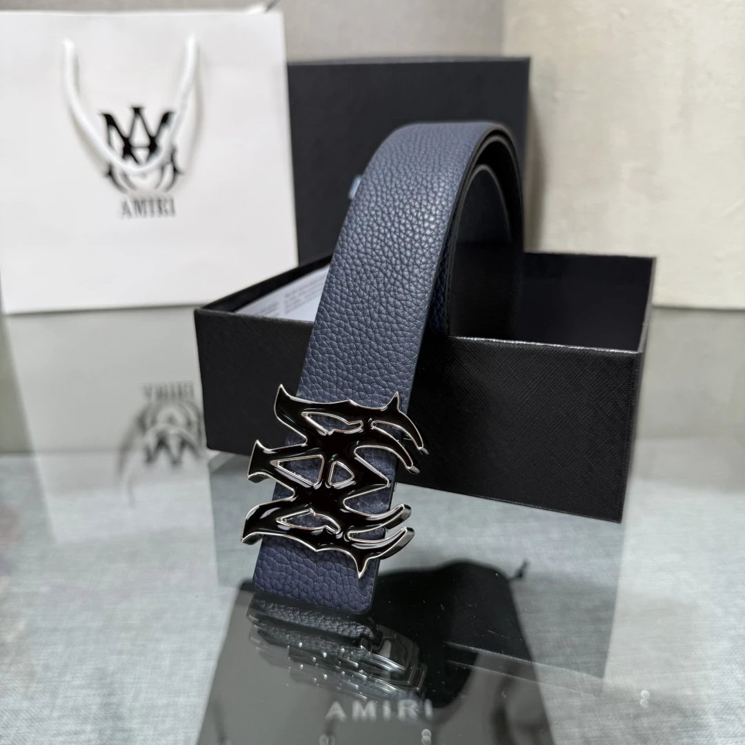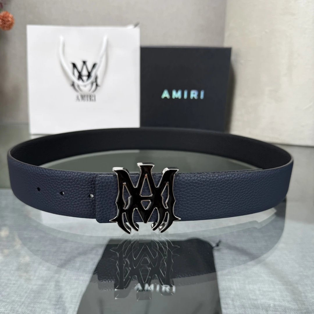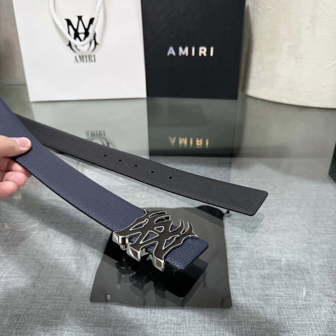 AMIRI Latest Popular Double-Sided Cowhide Belt with Original Box, 3.8cm Width, Original Cowhide & Steel Buckle, Elegant & Convenient.