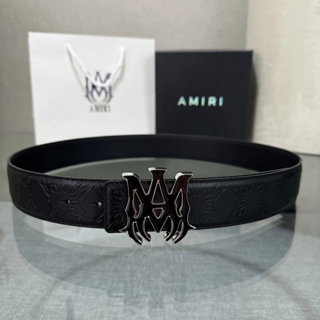 AMIRI New Double-Sided Cowhide Belt has premium cowhide, 3.8cm width, stainless steel buckle & original box. Elegant, convenient daily wear.