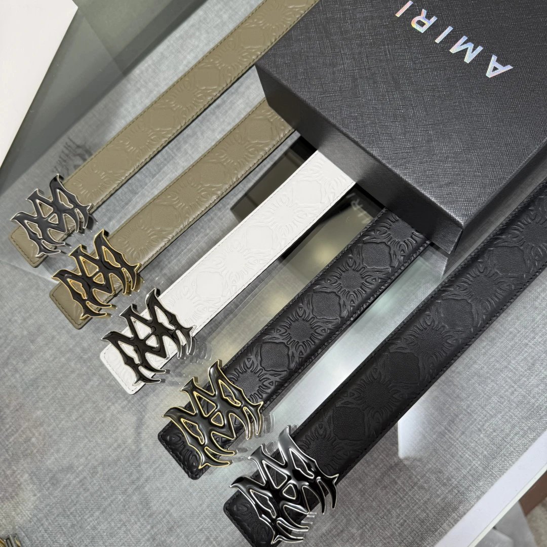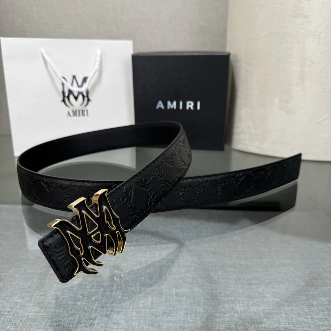 AMIRI Latest Popular Double-Sided Cowhide Belt comes with original box, 3.8cm width, made of original cowhide with steel buckle, elegant and convenient to use.