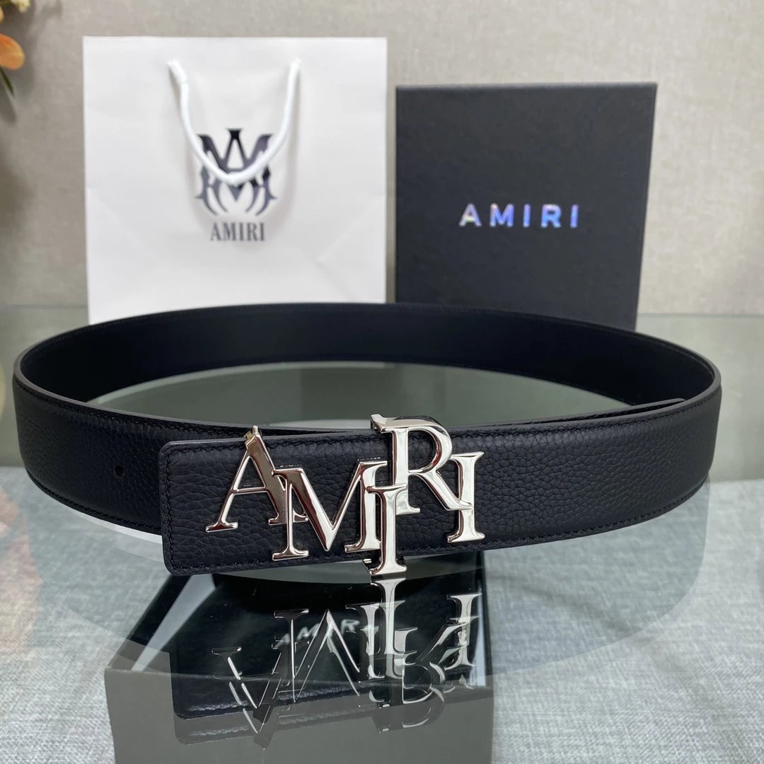 AMIRI Double-Sided Cowhide Belt 3.8cm Premium Steel Buckle Original Box Stylish