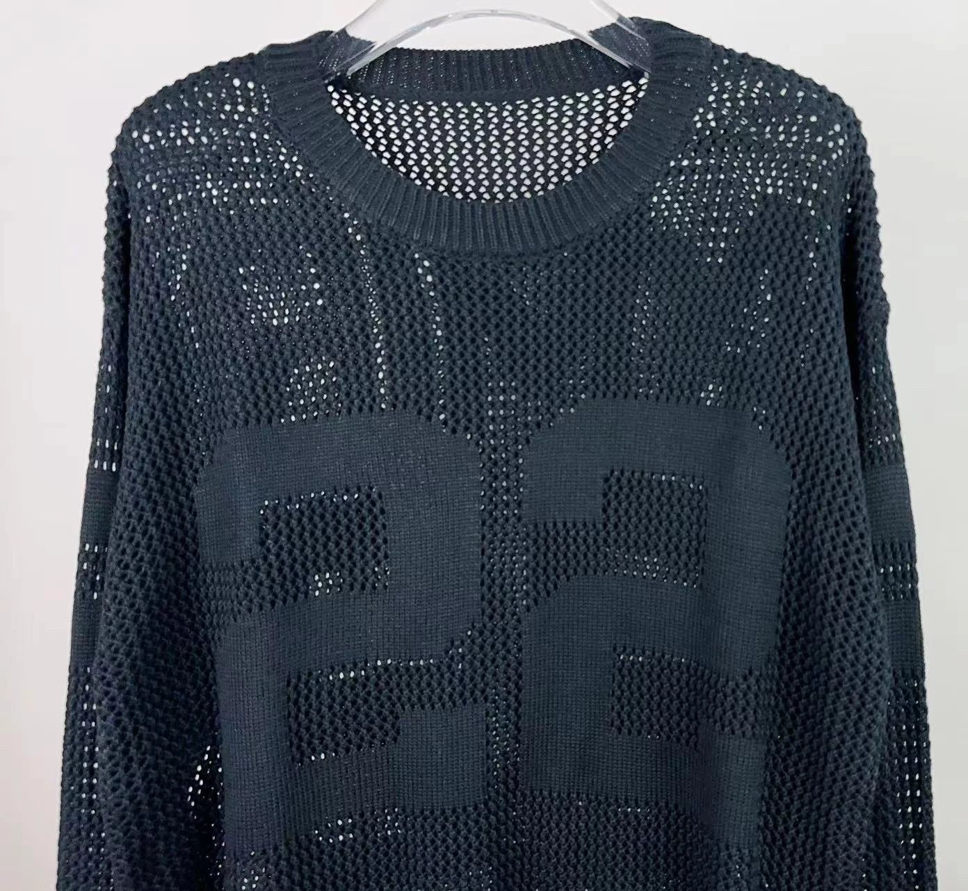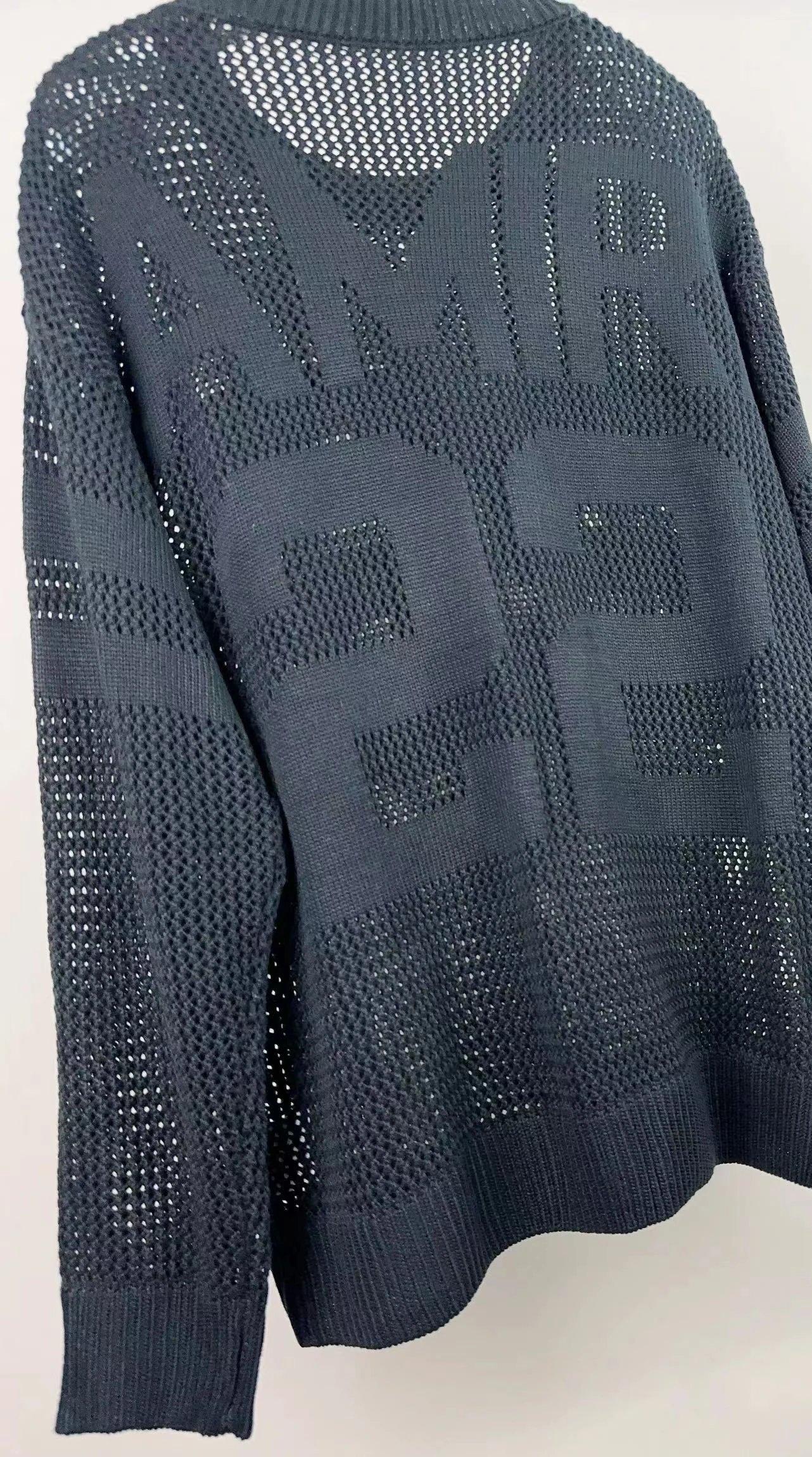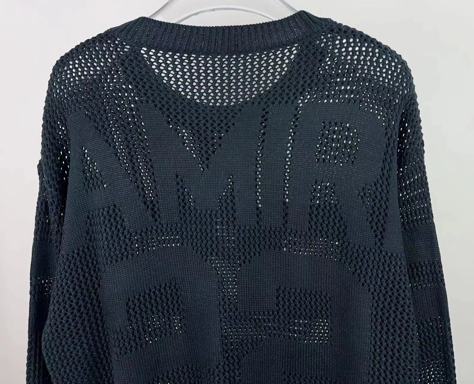 AMIRI 2024 new sweater features front & back logo jacquard and hollow-out craftsmanship.