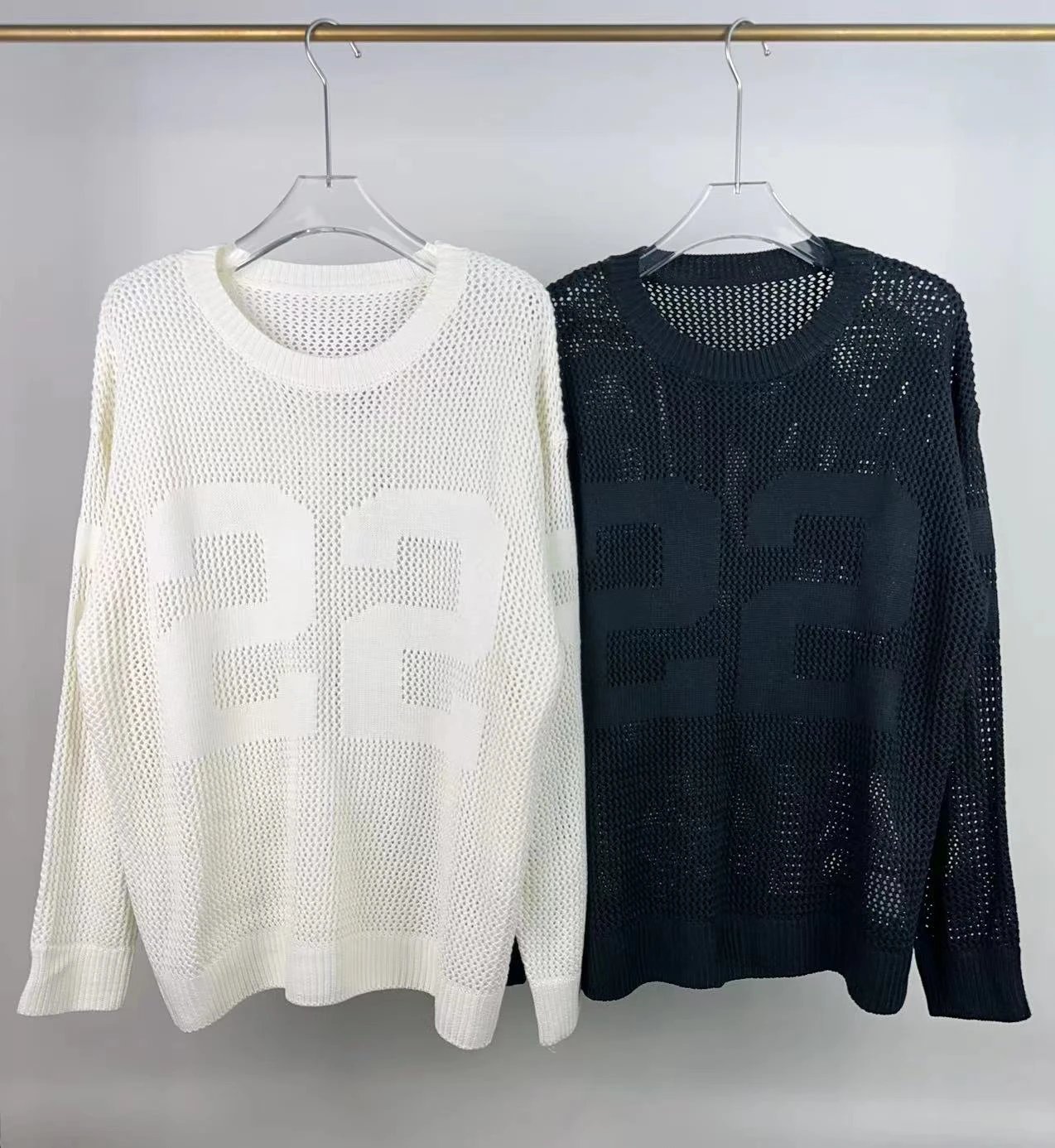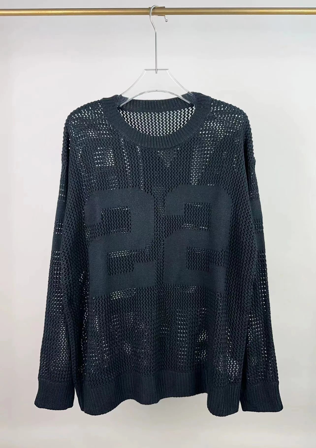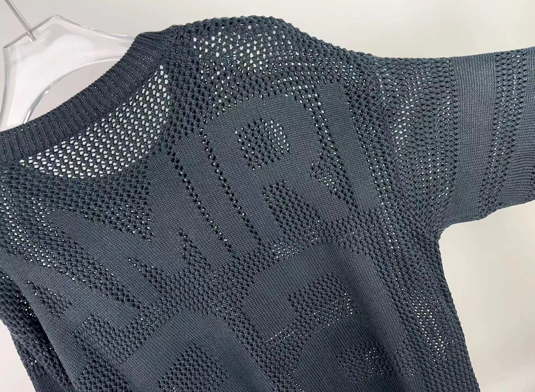 AMIRI 2024 new sweater features front & back logo jacquard and hollow-out craftsmanship.