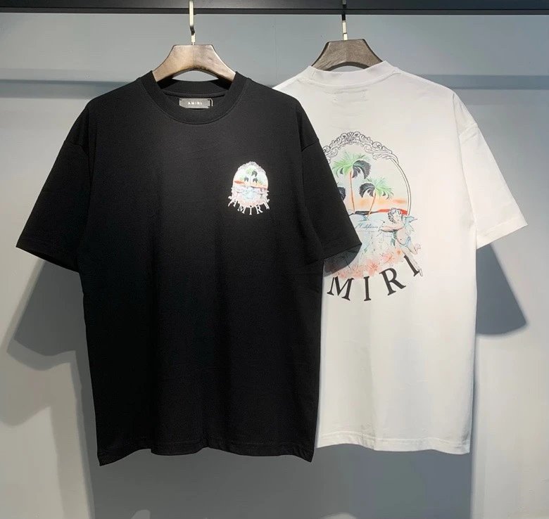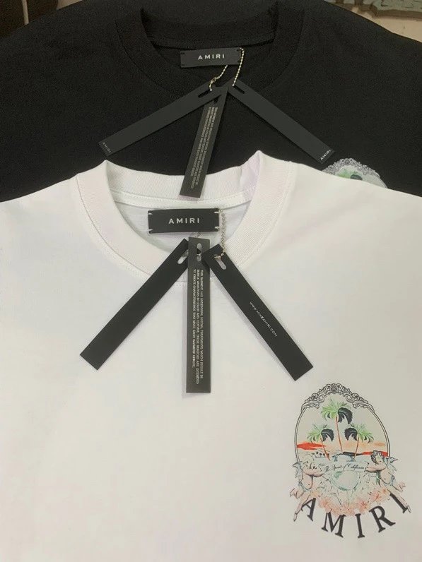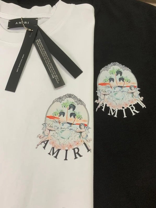 AMIRI Black & White T-Shirts offer real shot hanging shots, available in S, M, L, XL sizes.