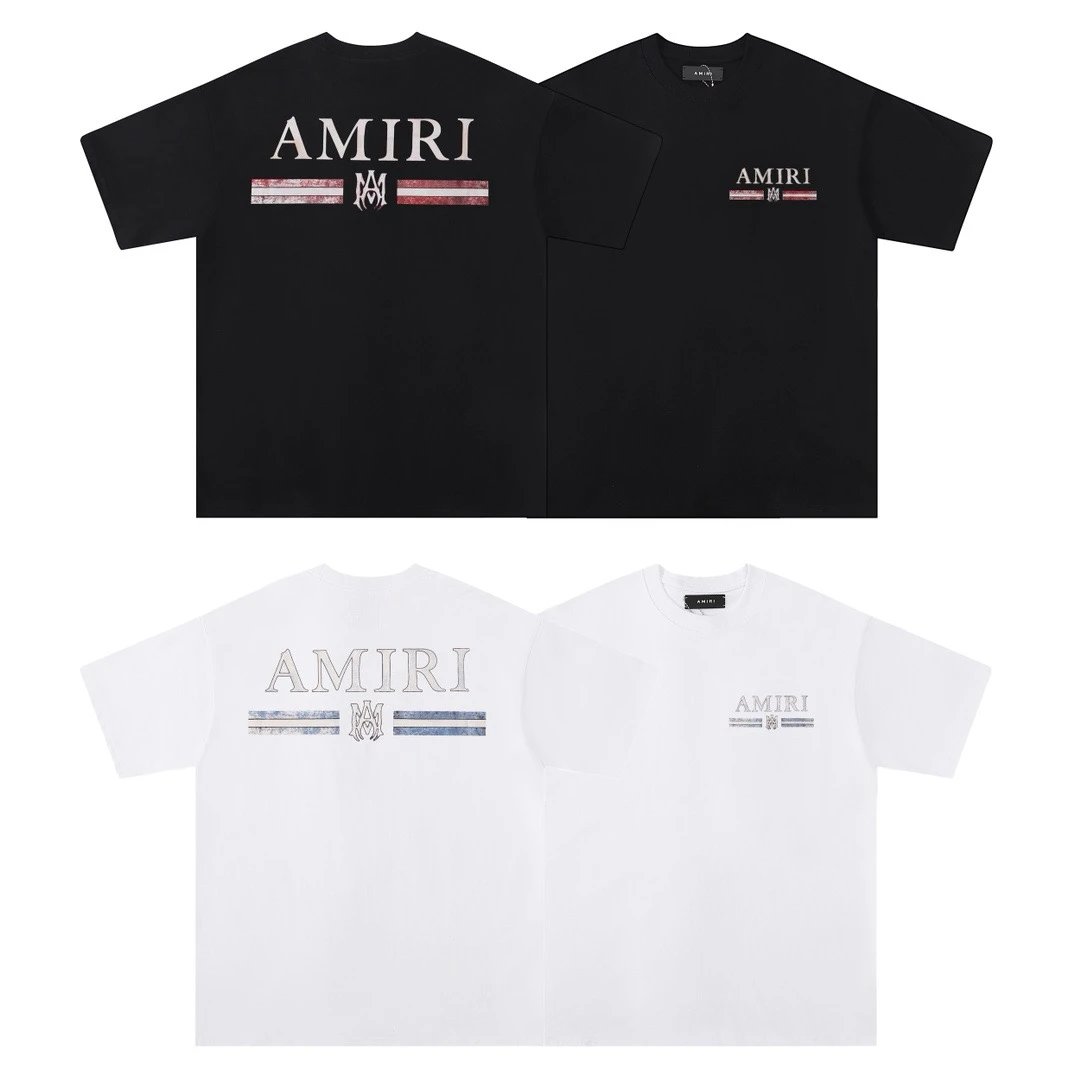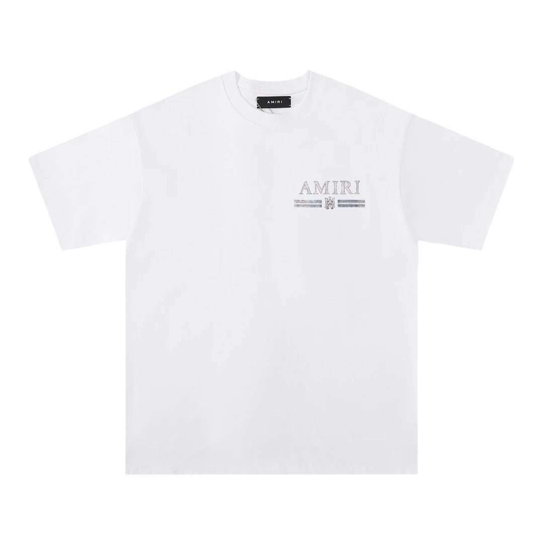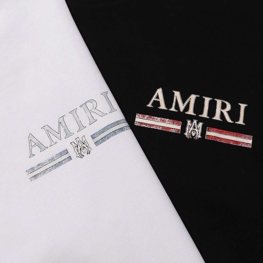 AMIRI 2024 Spring Summer unisex crew neck T-shirt features classic logo, loose fit, 260g double yarn fabric.
