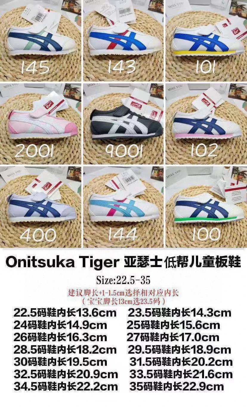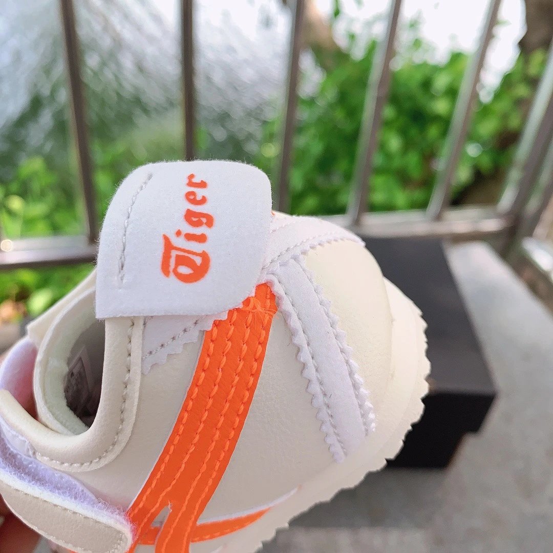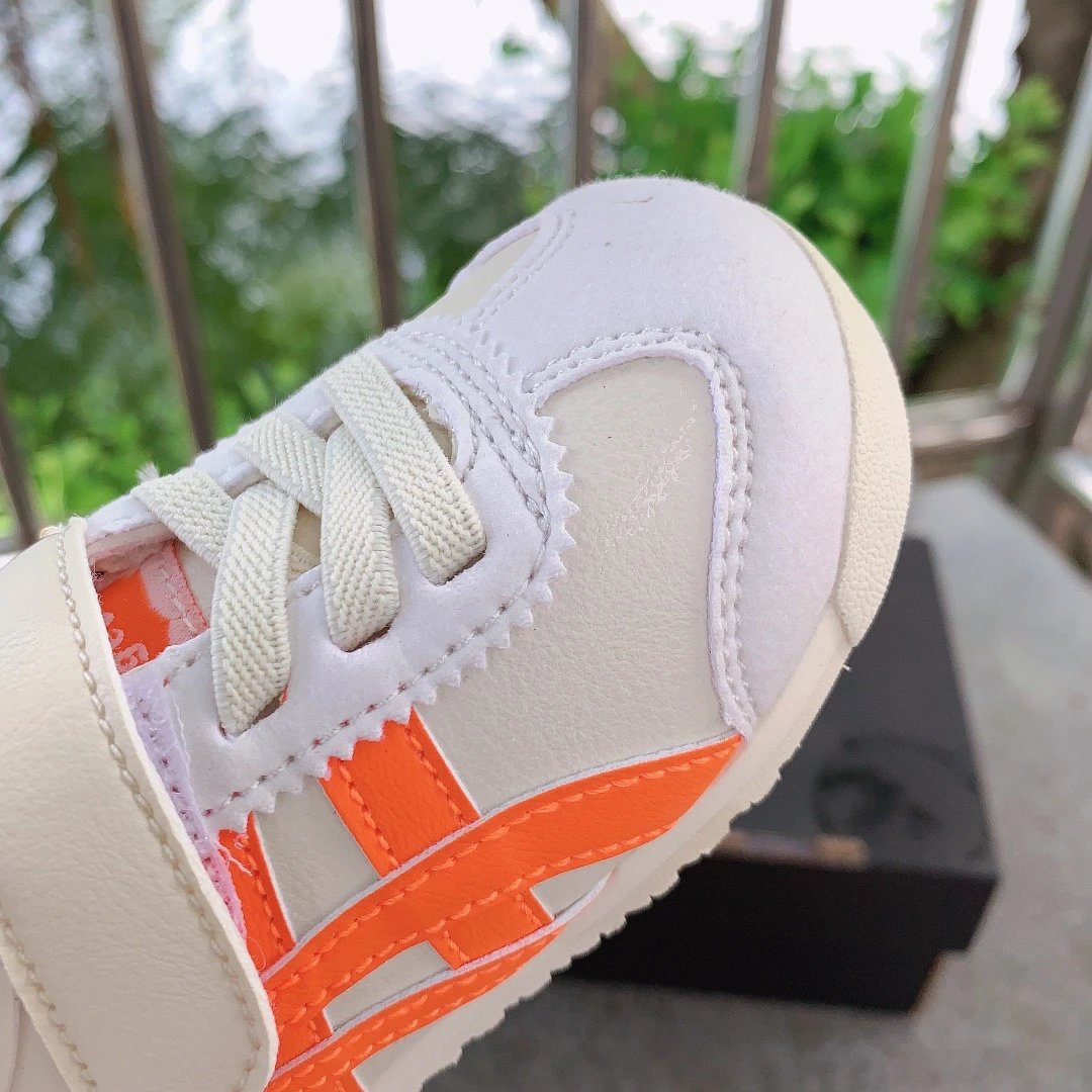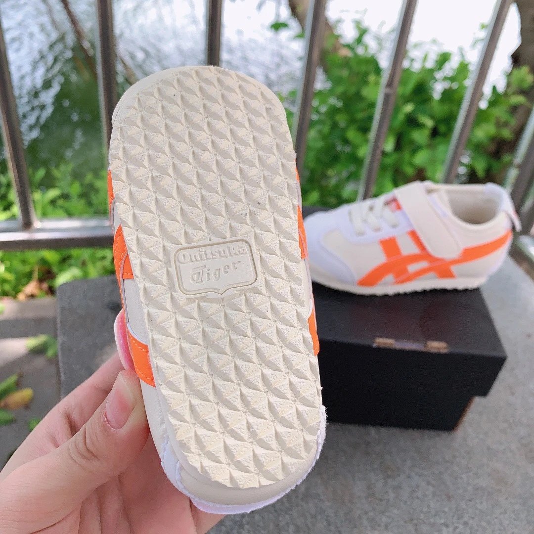ASICS Onitsuka Tiger Velcro Kids Shoes feature breathable fabric and soft design for little ones.