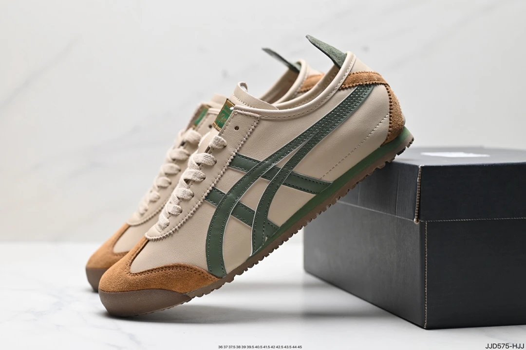 Onitsuka Tiger NIPPON MADE Mexico 66 Deluxe shoes feature NFC, dual wear (lace-up/slip-on), EVA insole for pressure relief.