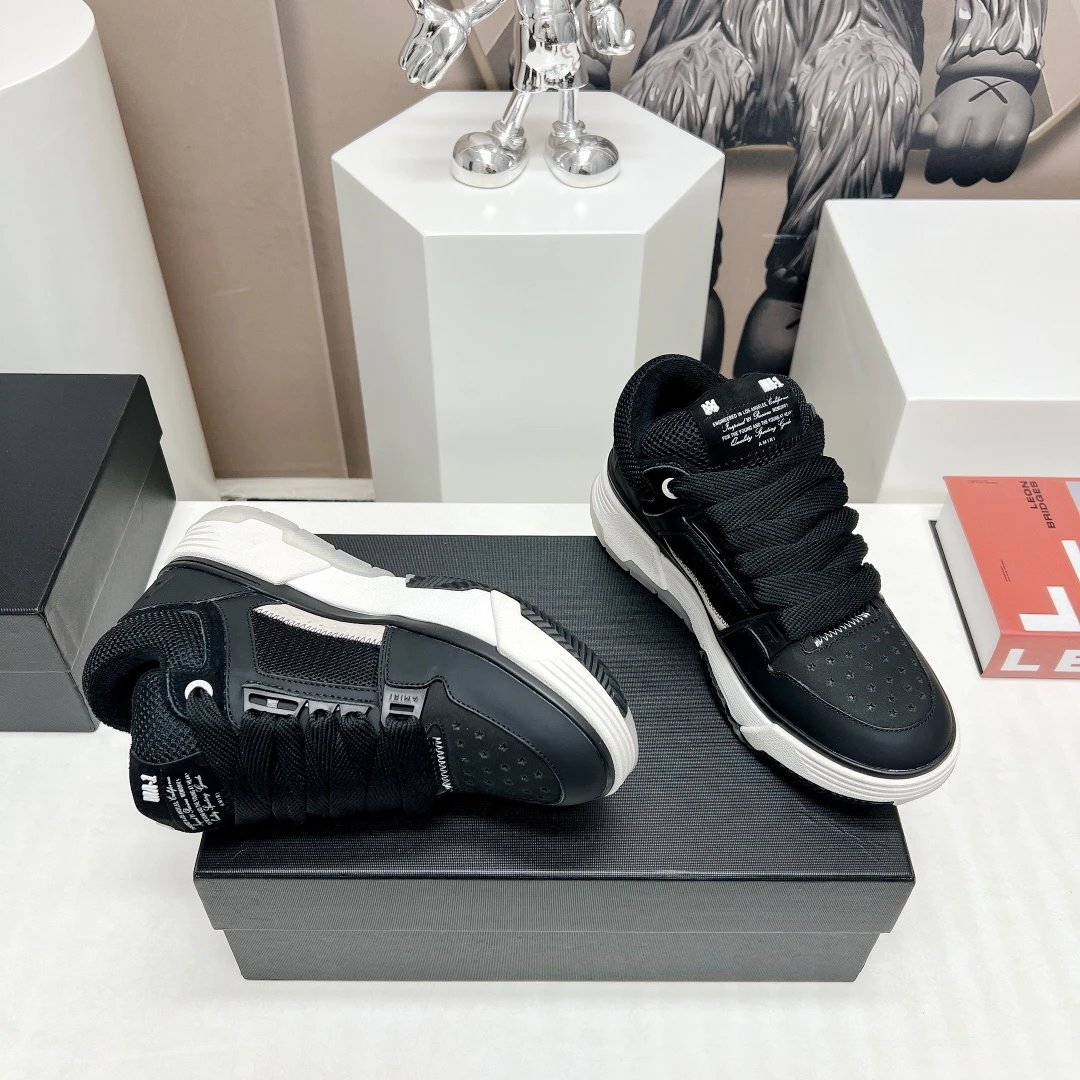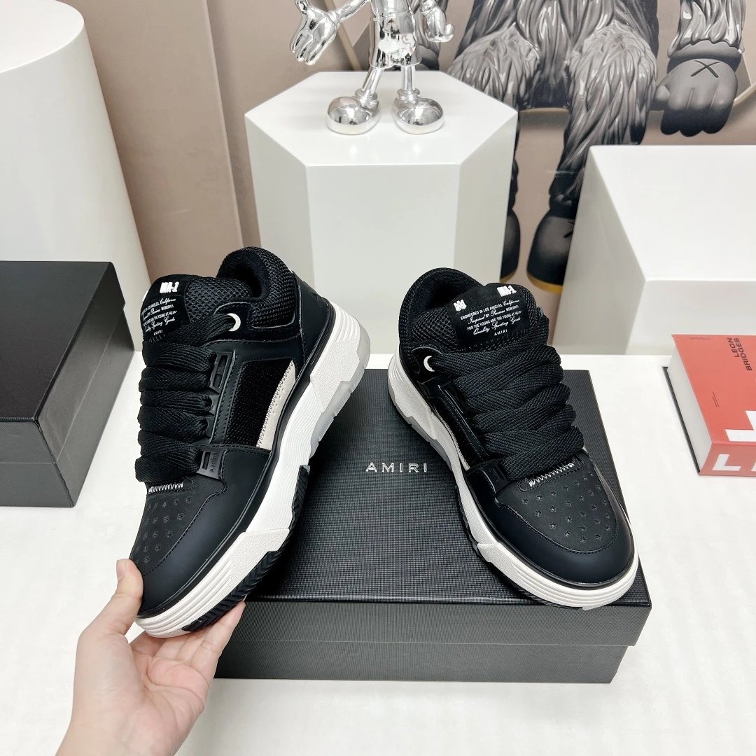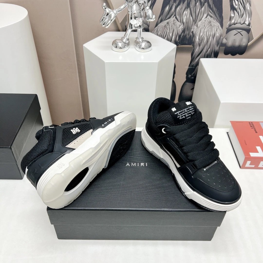 AMIRI Couple Chunky Casual Sneakers use premium cowhide leather, breathable mesh & custom TPU outsole.