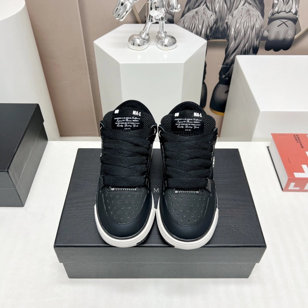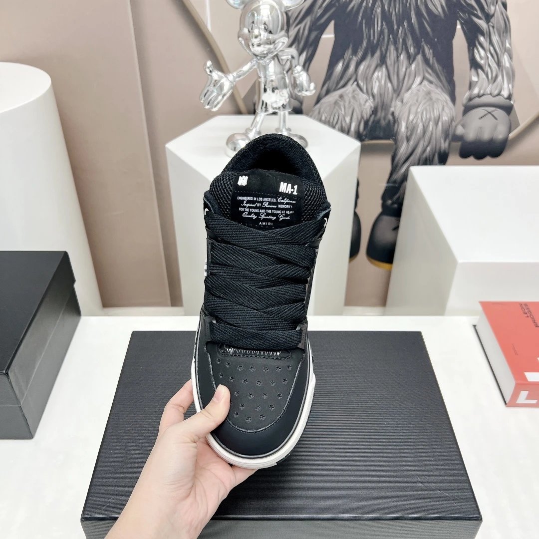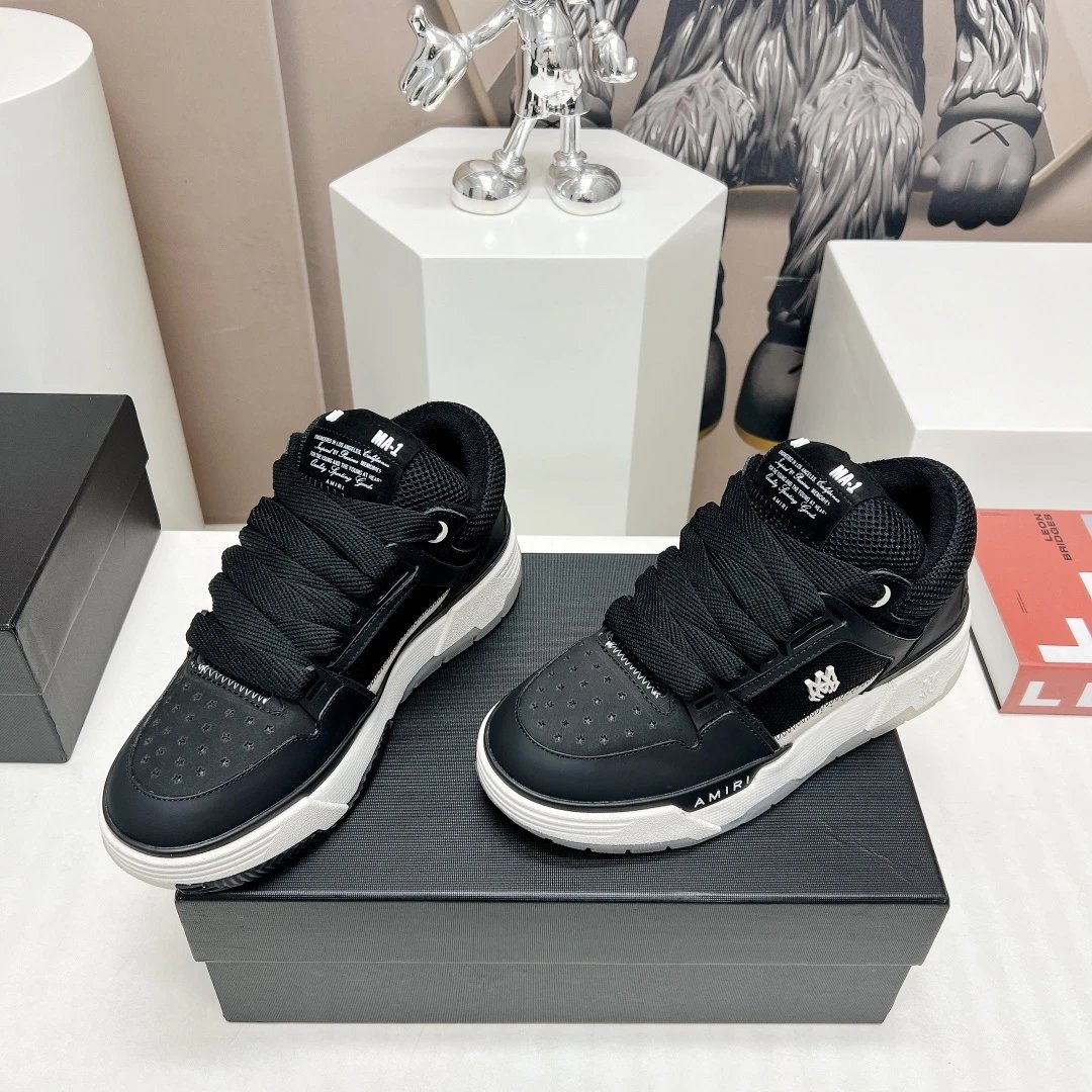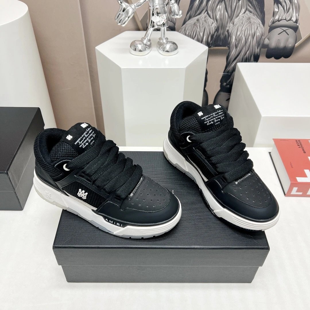 AMIRI Couple Chunky Casual Sneakers use premium cowhide leather, breathable mesh & custom TPU outsole.
