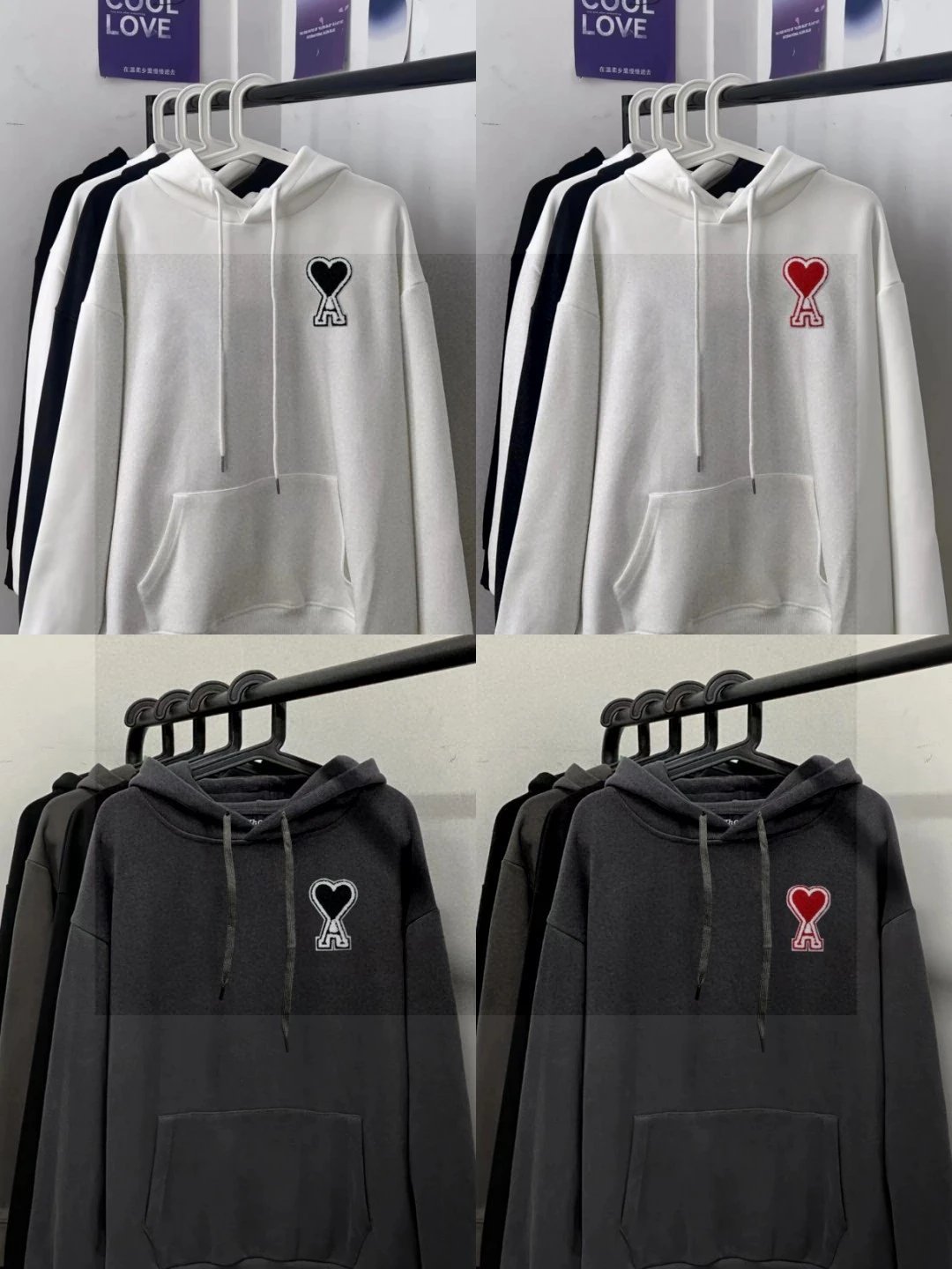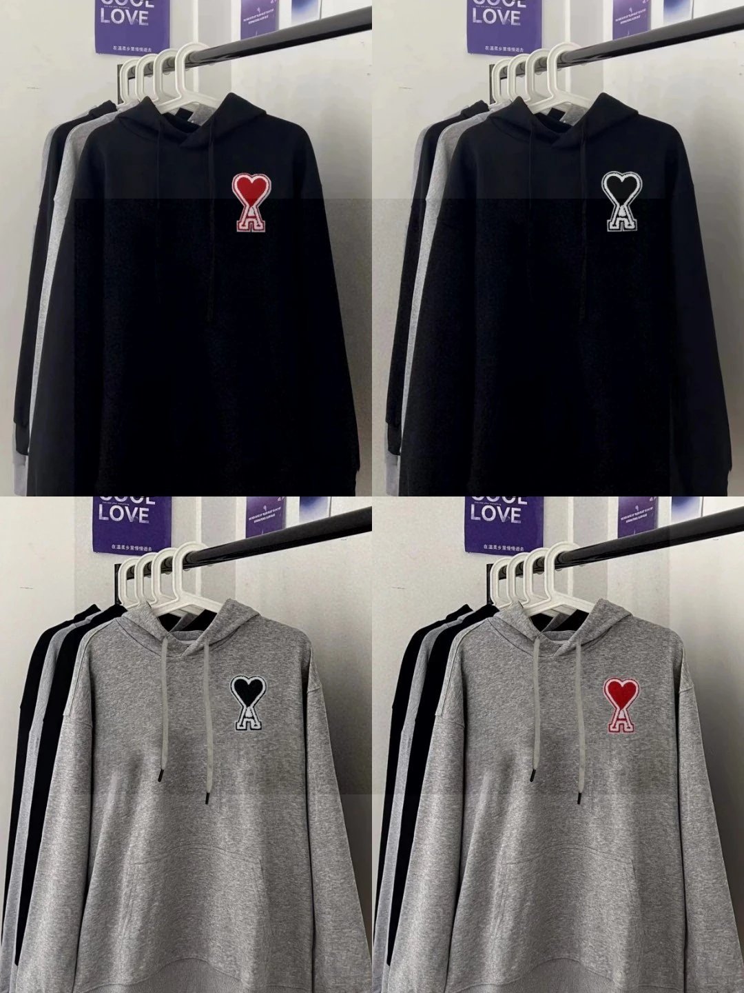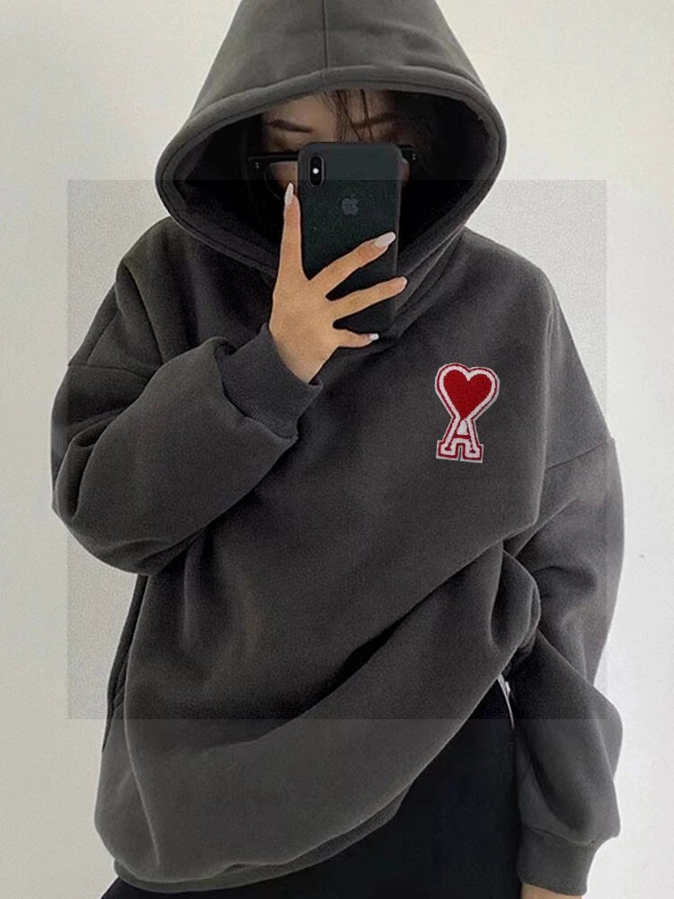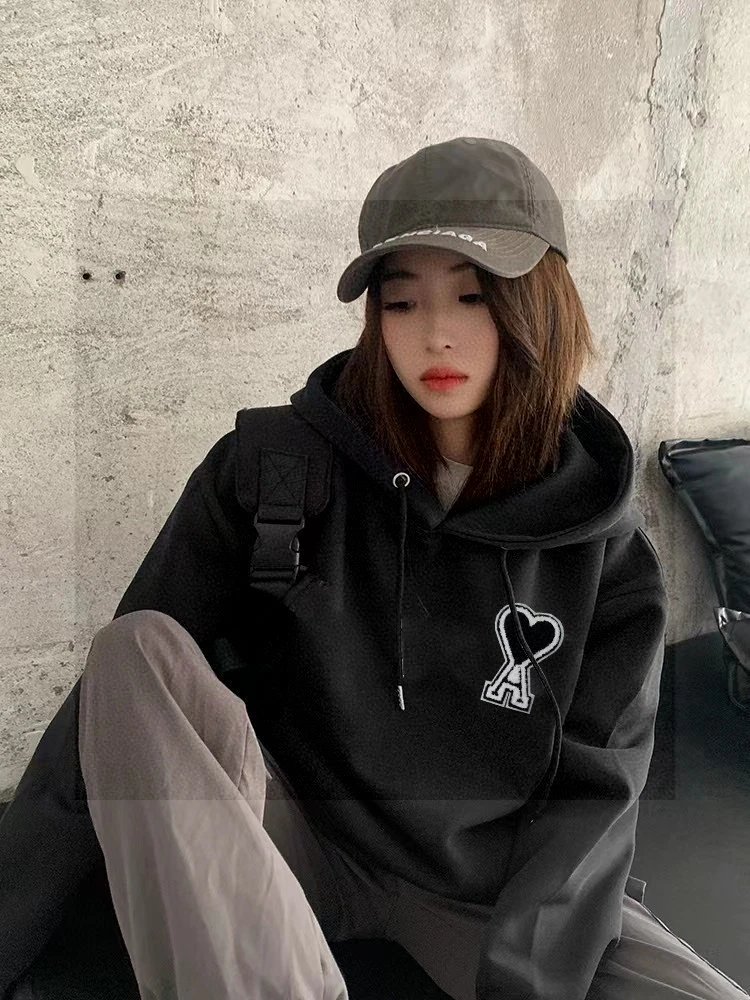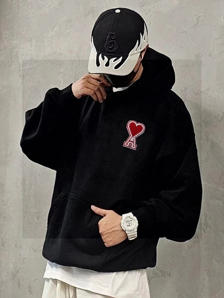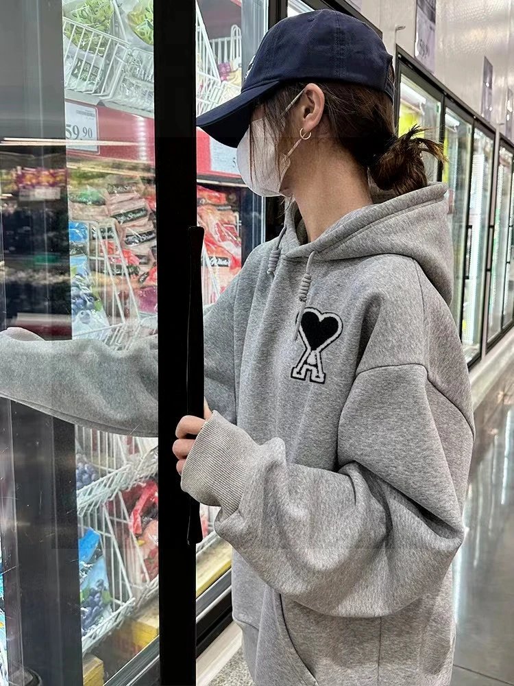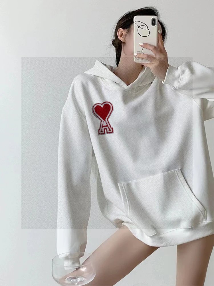AMI High-Quality Heart Patch Embroidered Unisex Hoodie - Distinct from low-quality versions, matches latest official style.