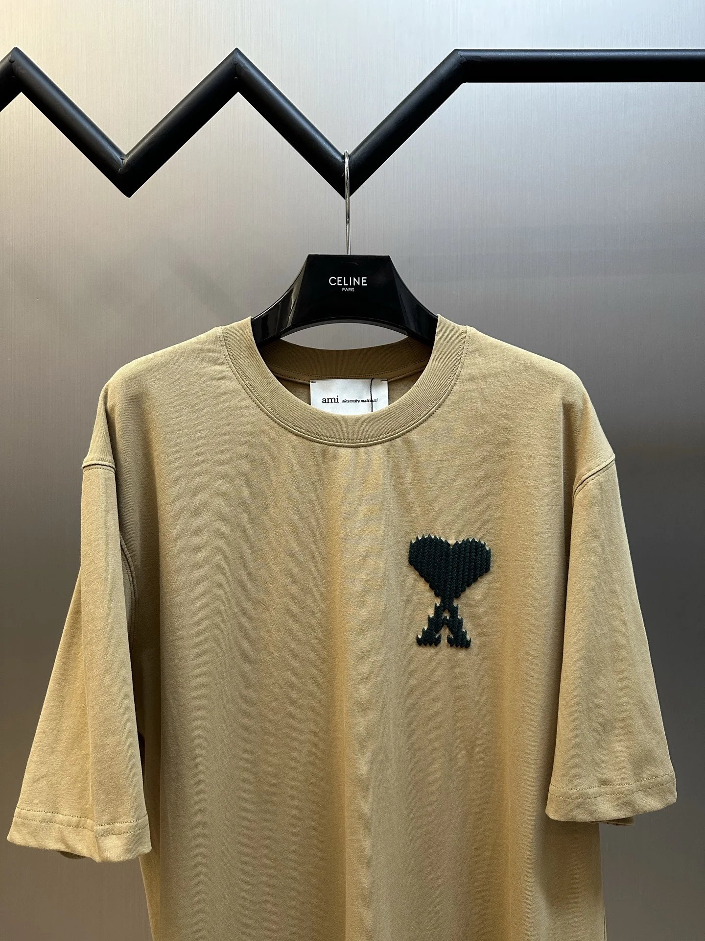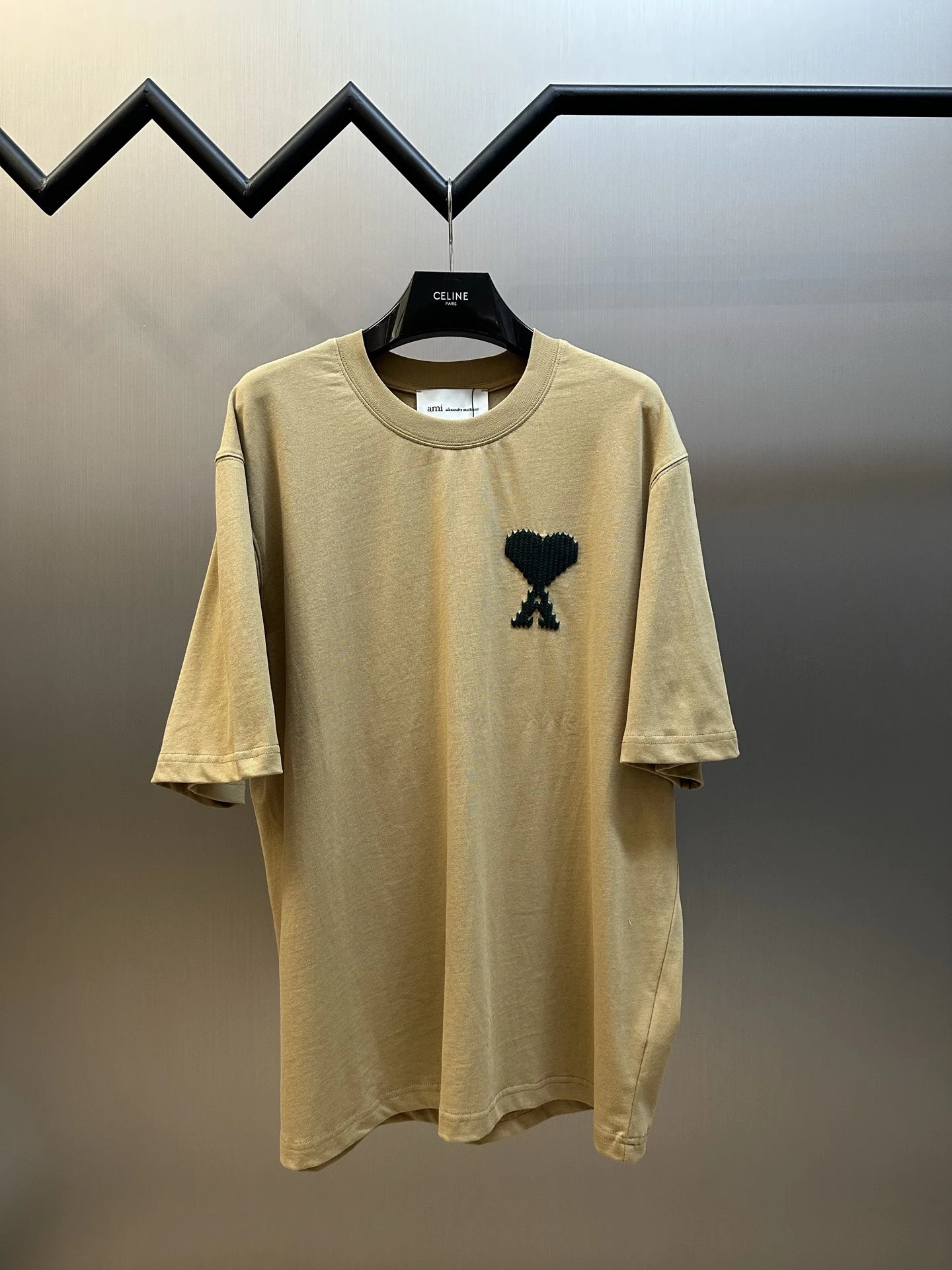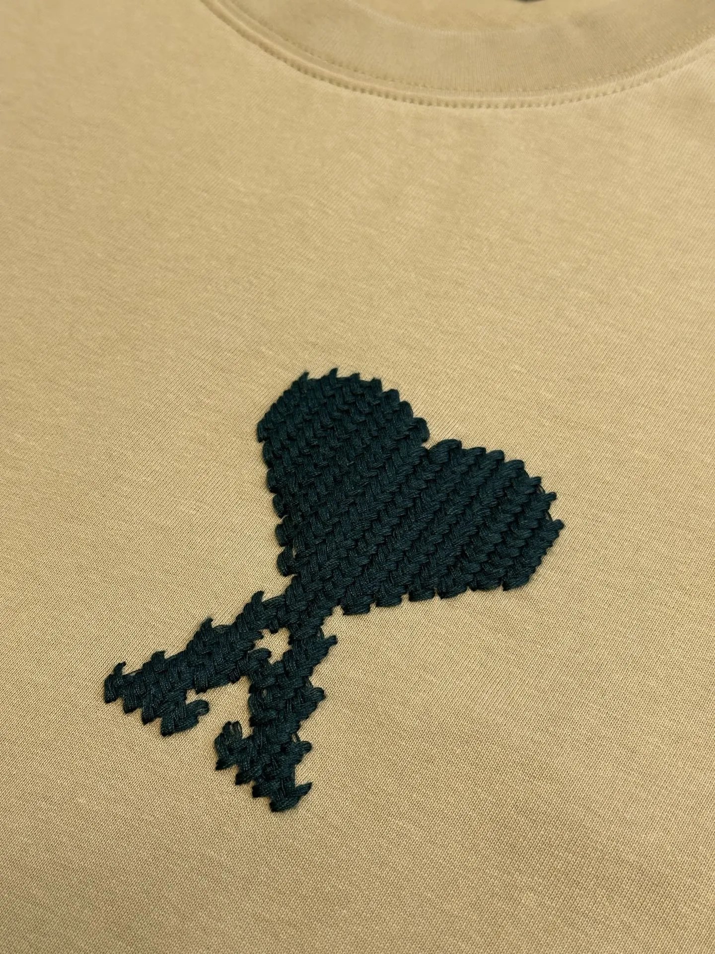 Pixelated heart & AMI letter embroidery on chest/back adds brand identity with French charm.