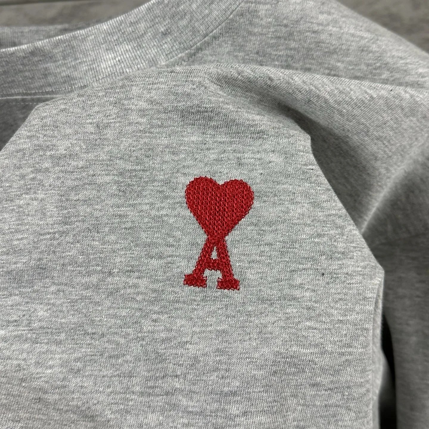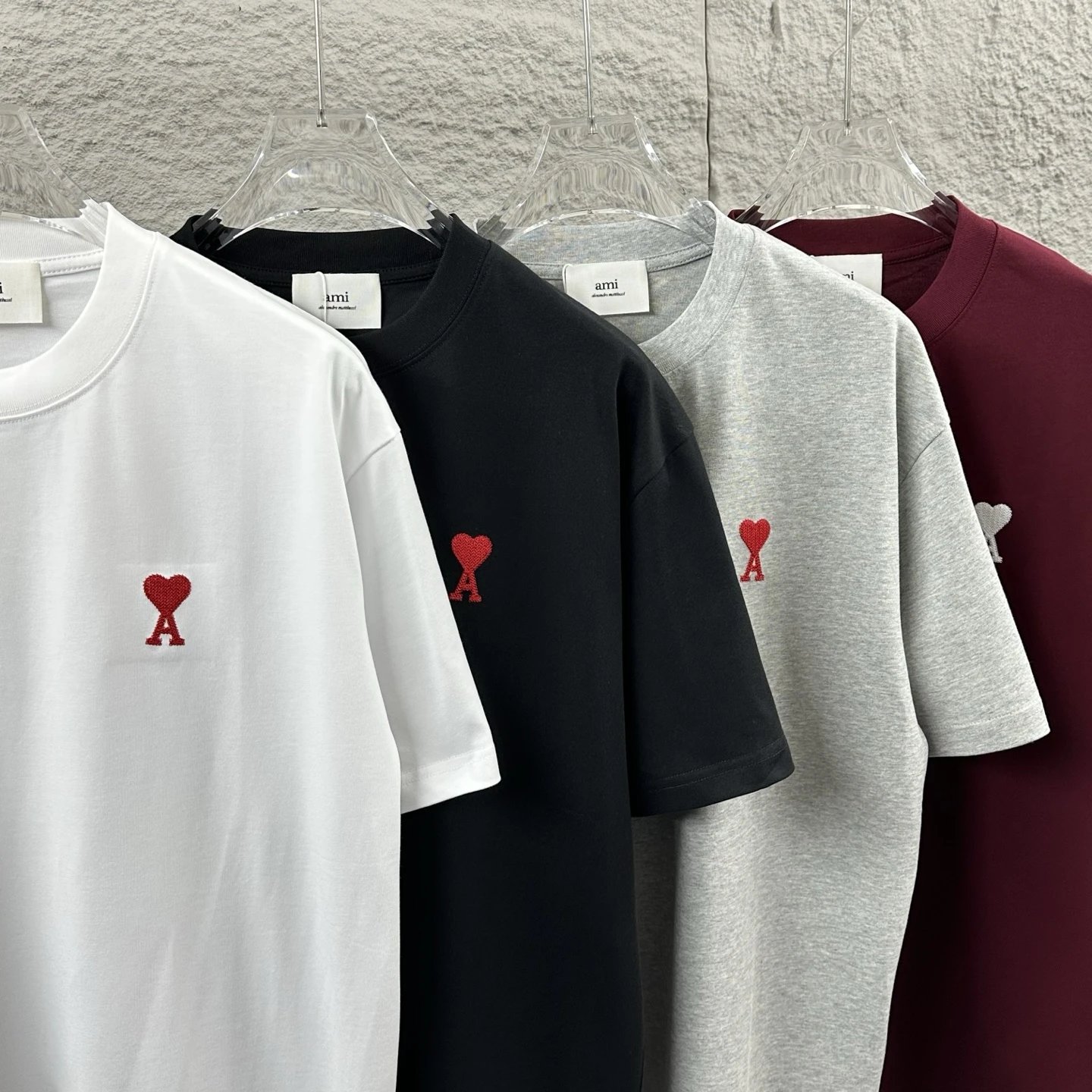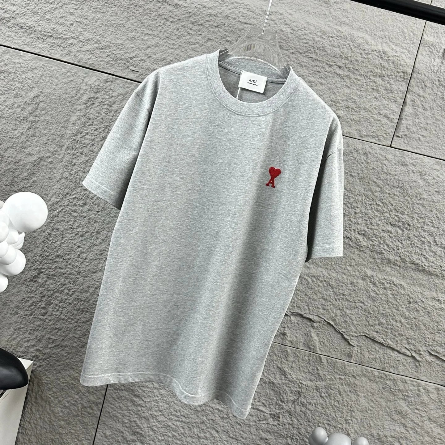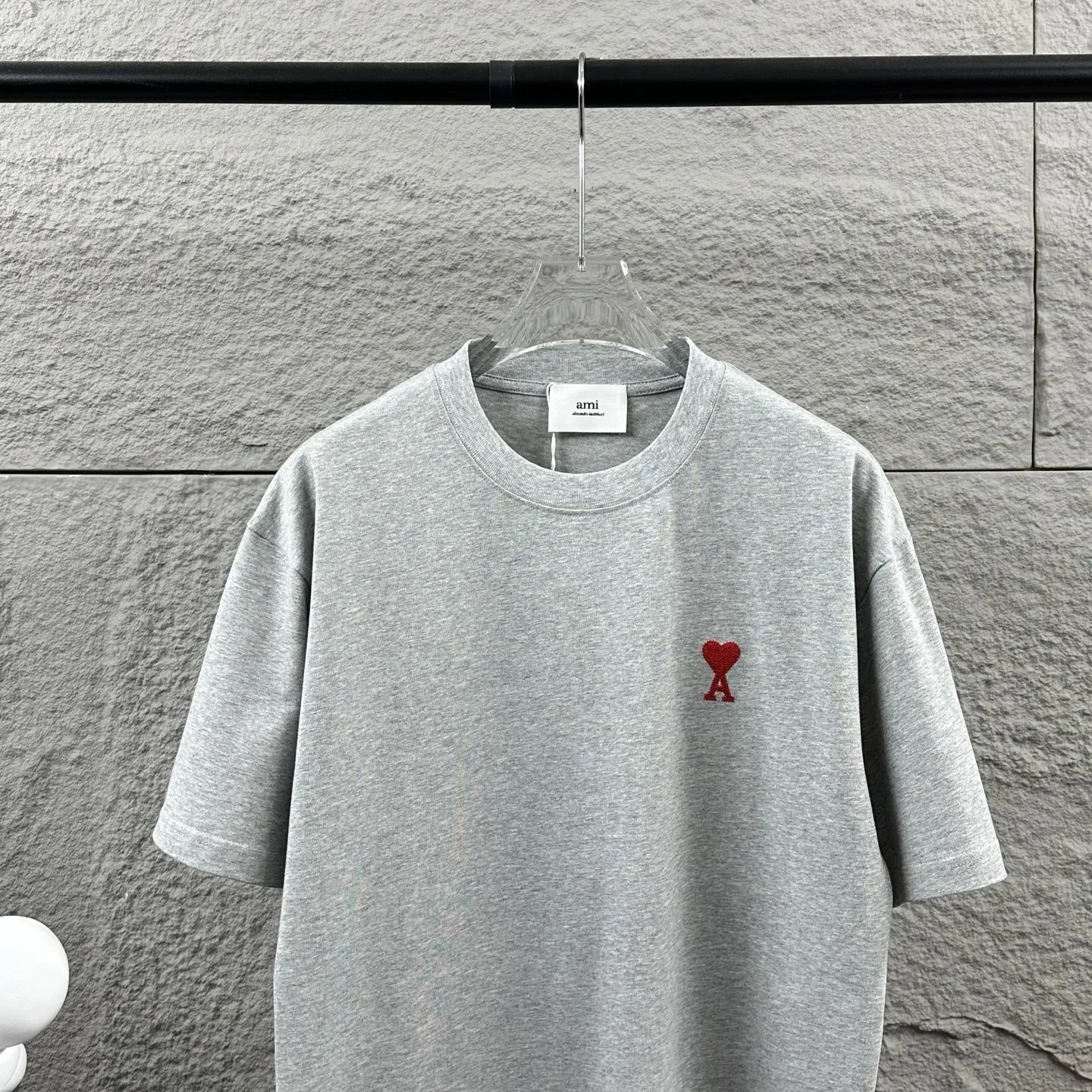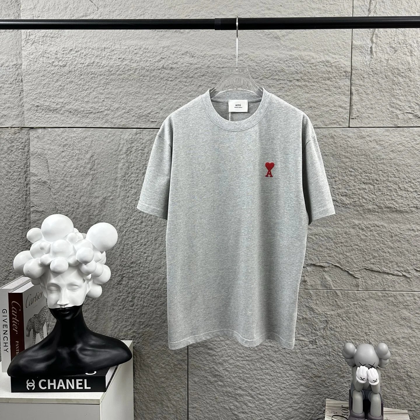 AMI 2026 Spring Summer collection features a classic unisex T-shirt with small love embroidery logo.