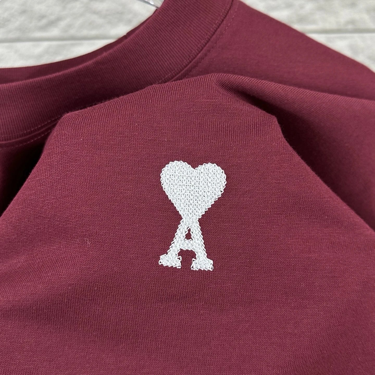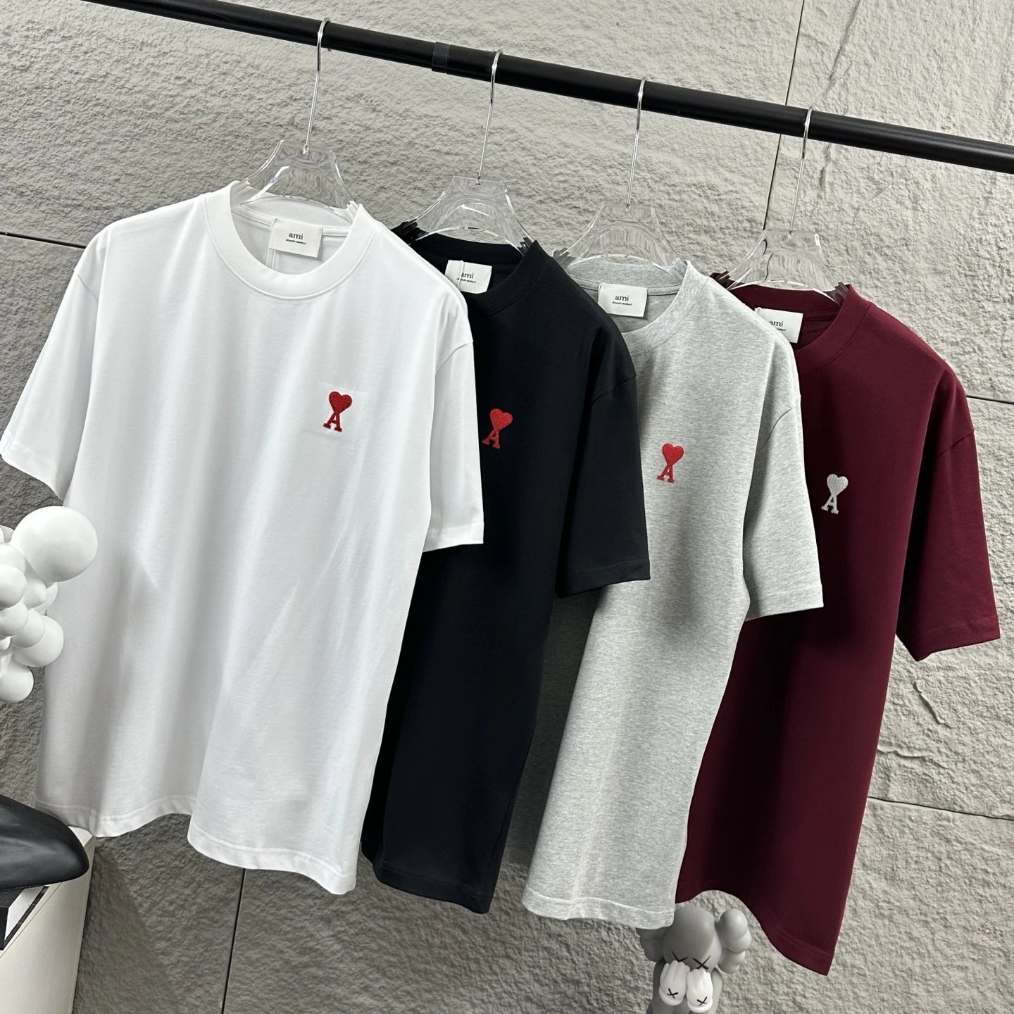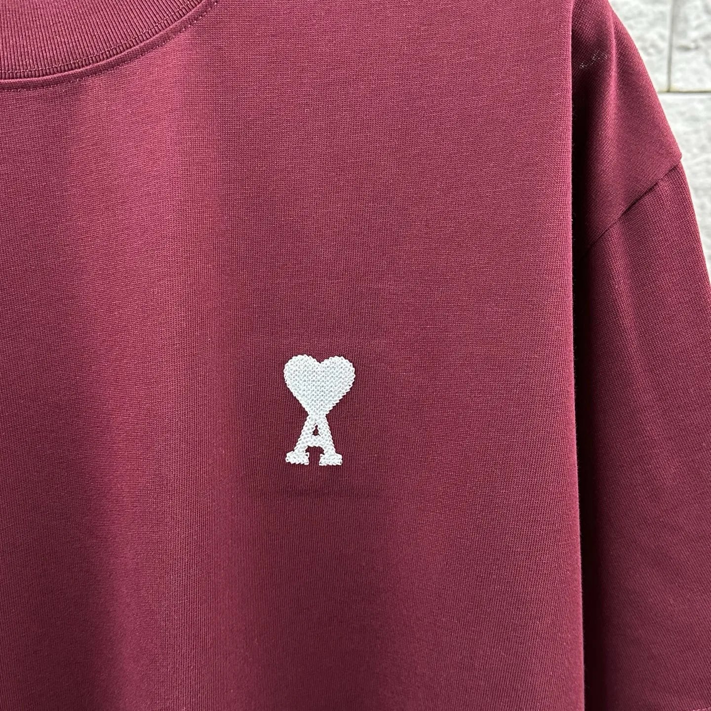 Ami 2026 SS Heart Embroidery Unisex Cotton T-Shirt