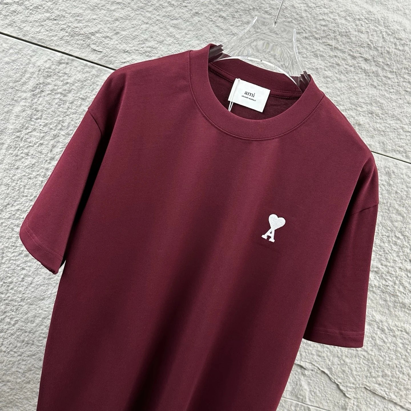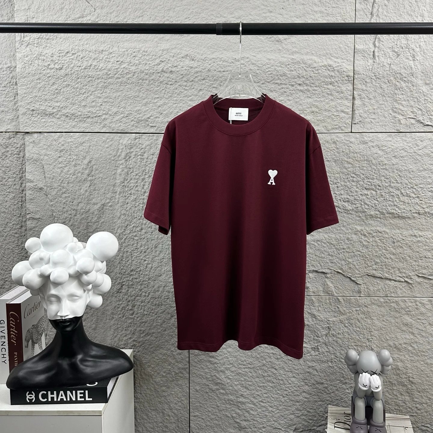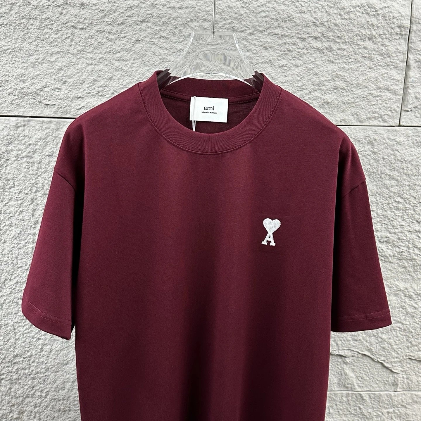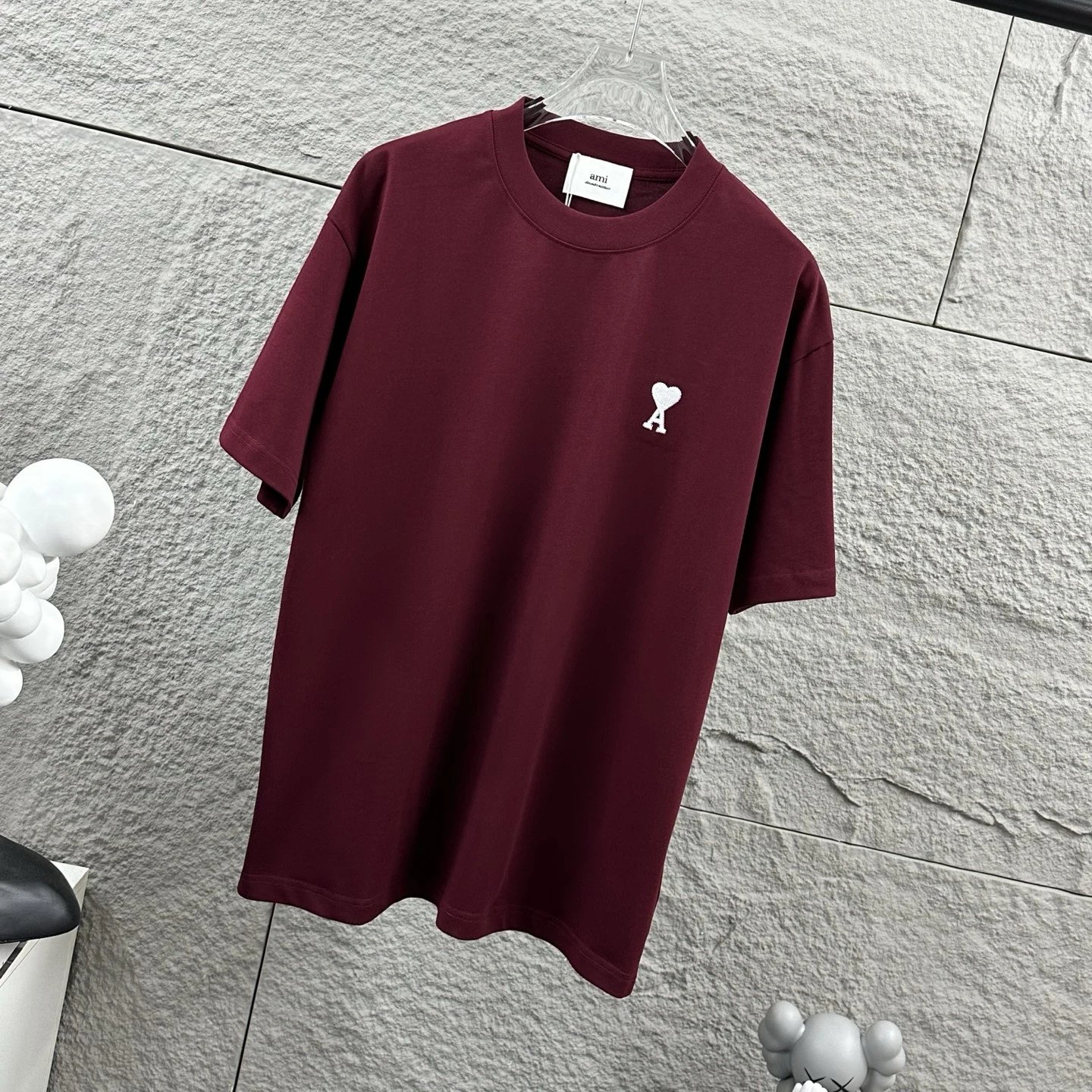 Ami 2026 SS Heart Embroidery Unisex Cotton T-Shirt