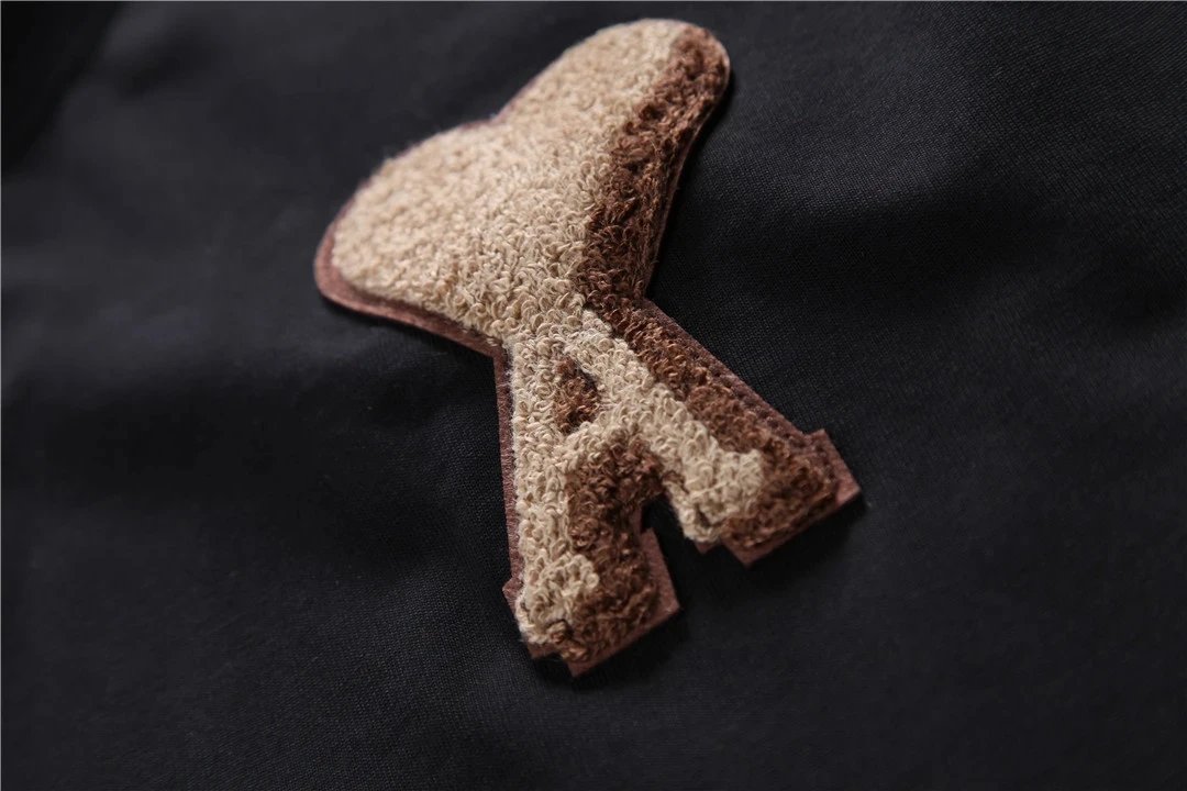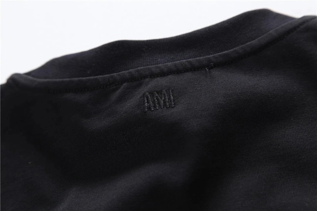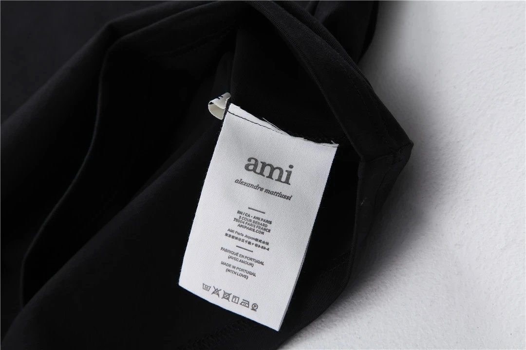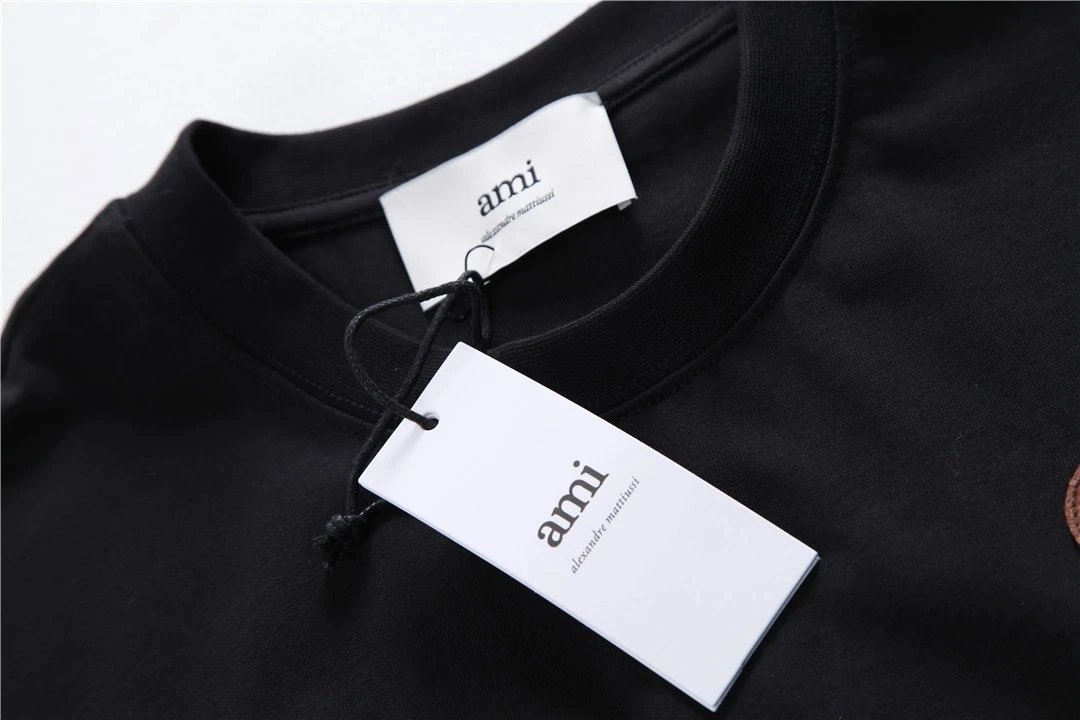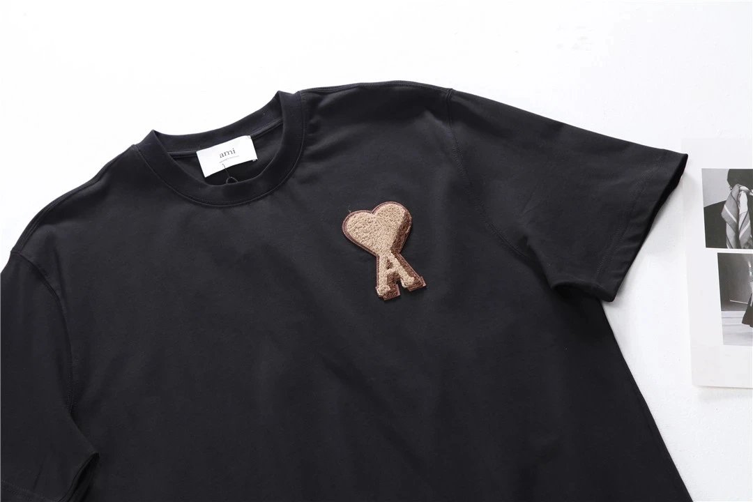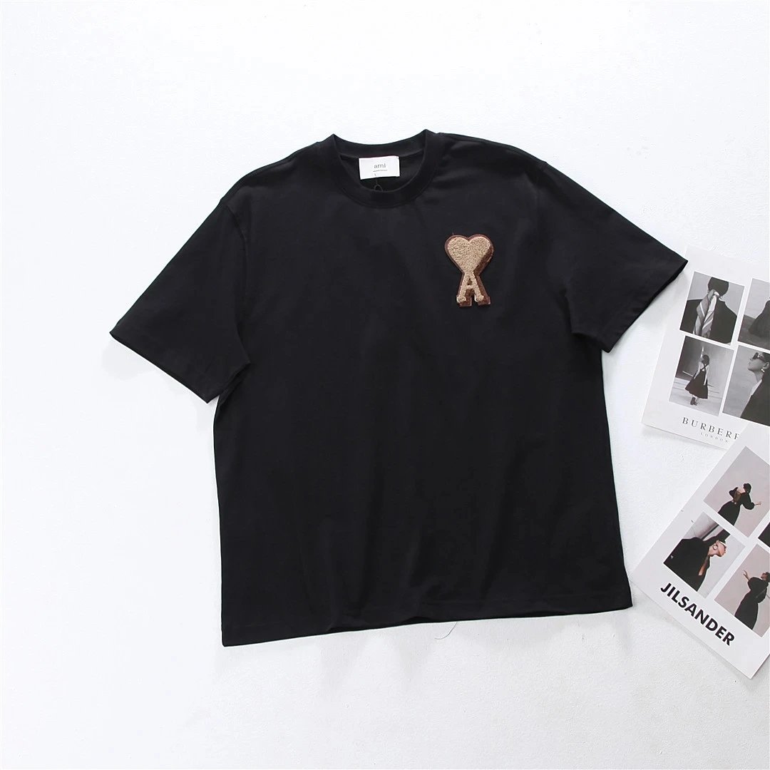 AMI 2026 latest black gold collection unisex oversized t-shirt features big heart towel embroidery & gold logo.
