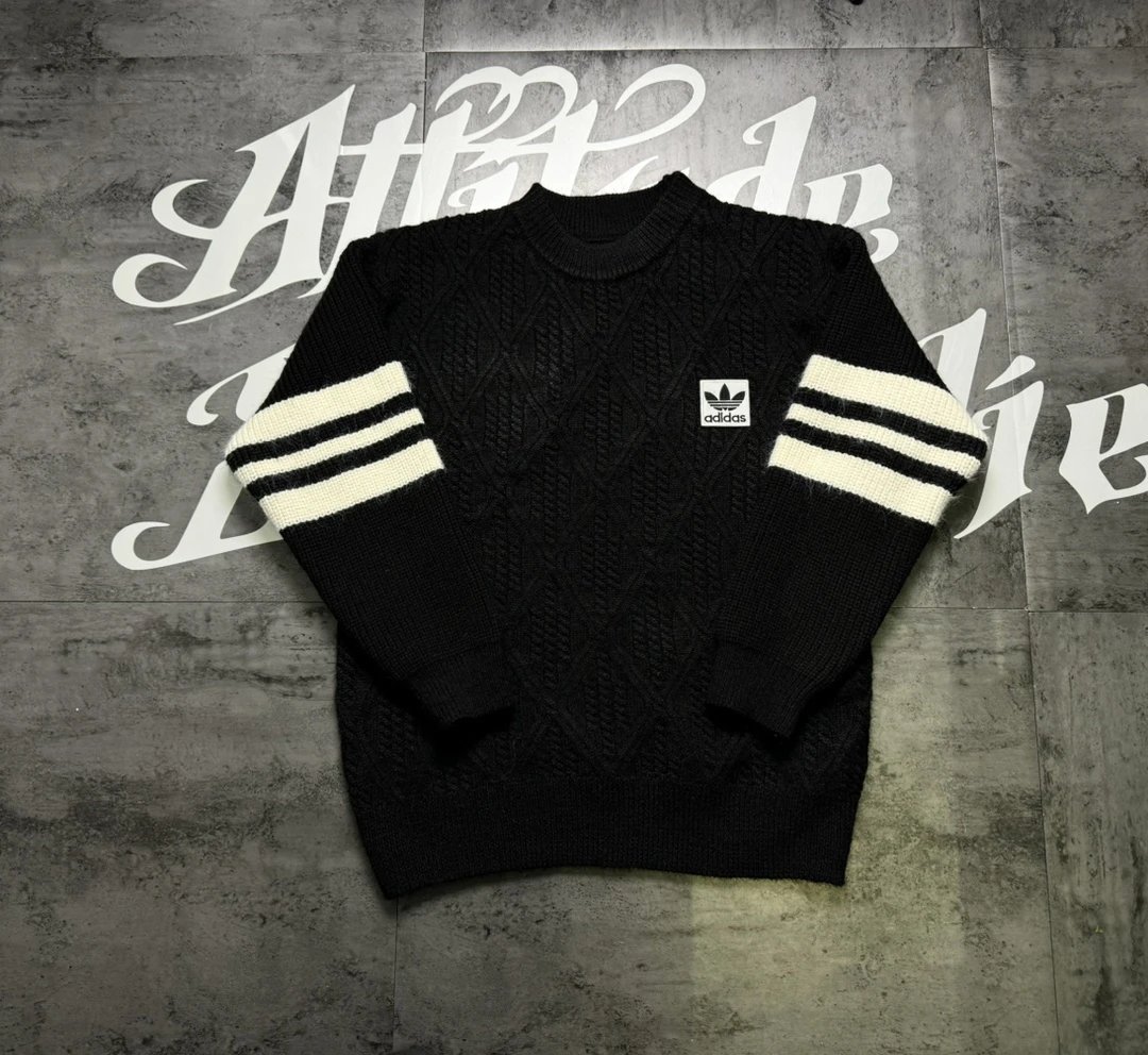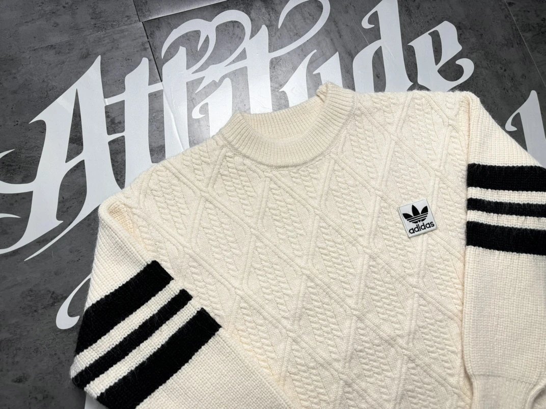 Adidas Trefoil Colorblock Couple Crew Neck Thick Knit Sweater