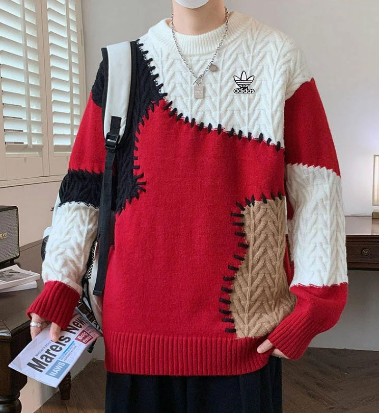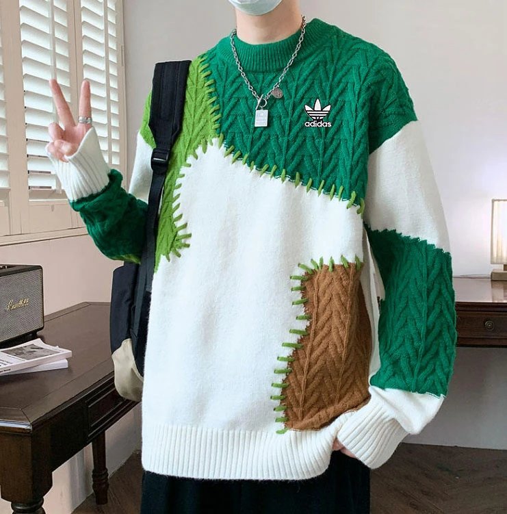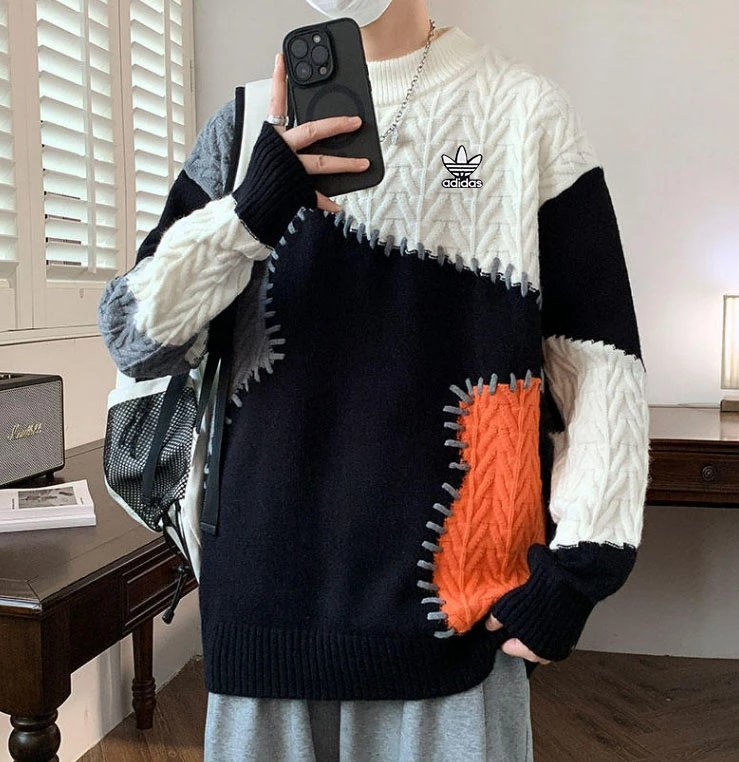 Adidas Men's Fall Winter Hong Kong Style Loose Drop Shoulder Sweater