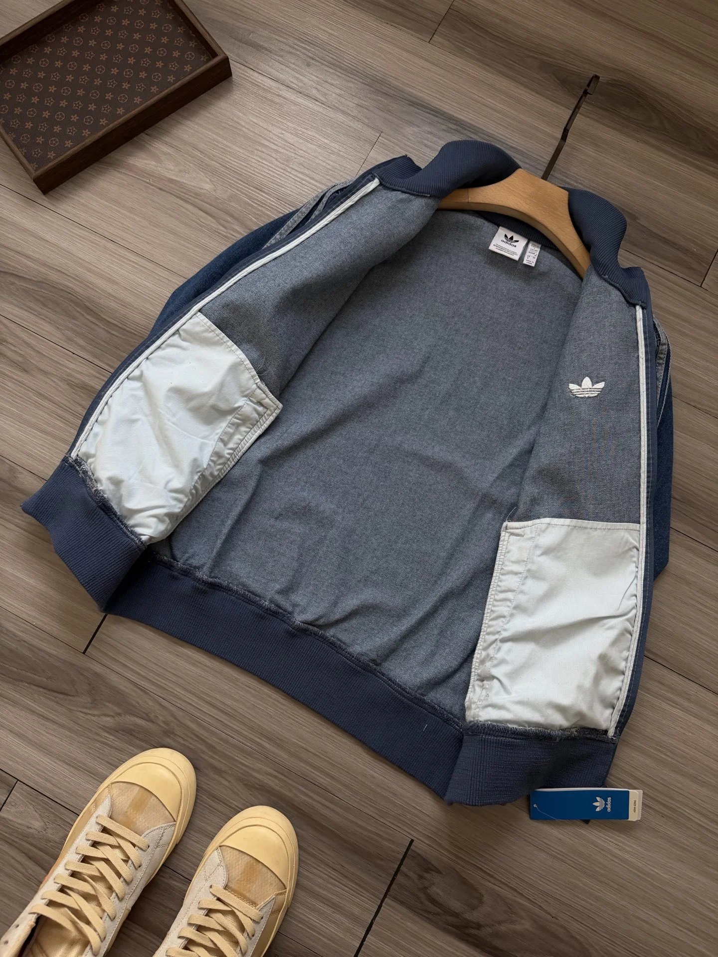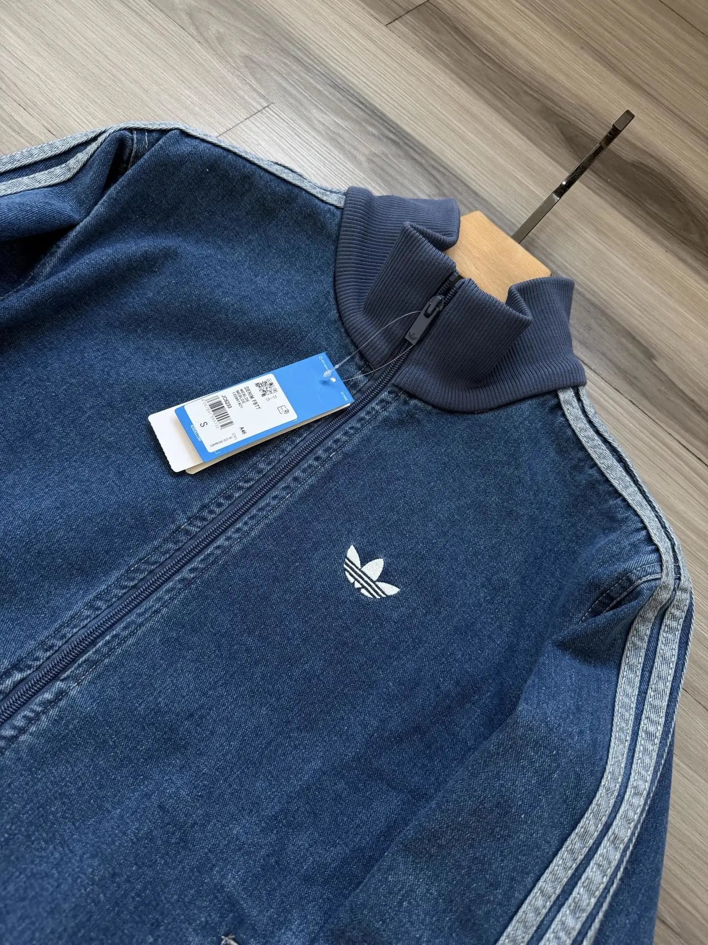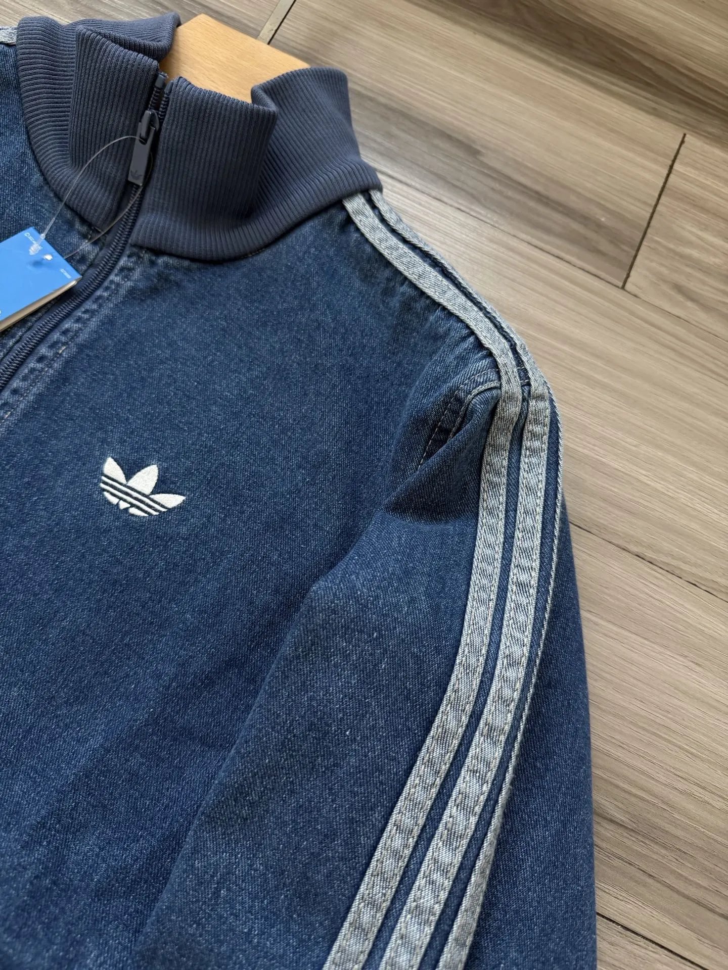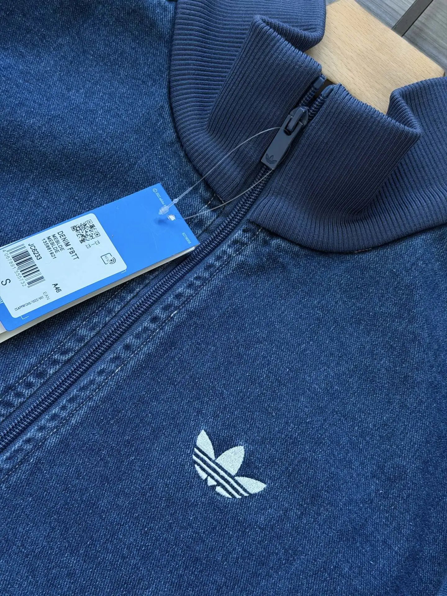 Adidas Originals ADICOLOR Unisex Retro Zip Denim Jacket: denim blue, washed denim, Tajima embroidery, straight fit.