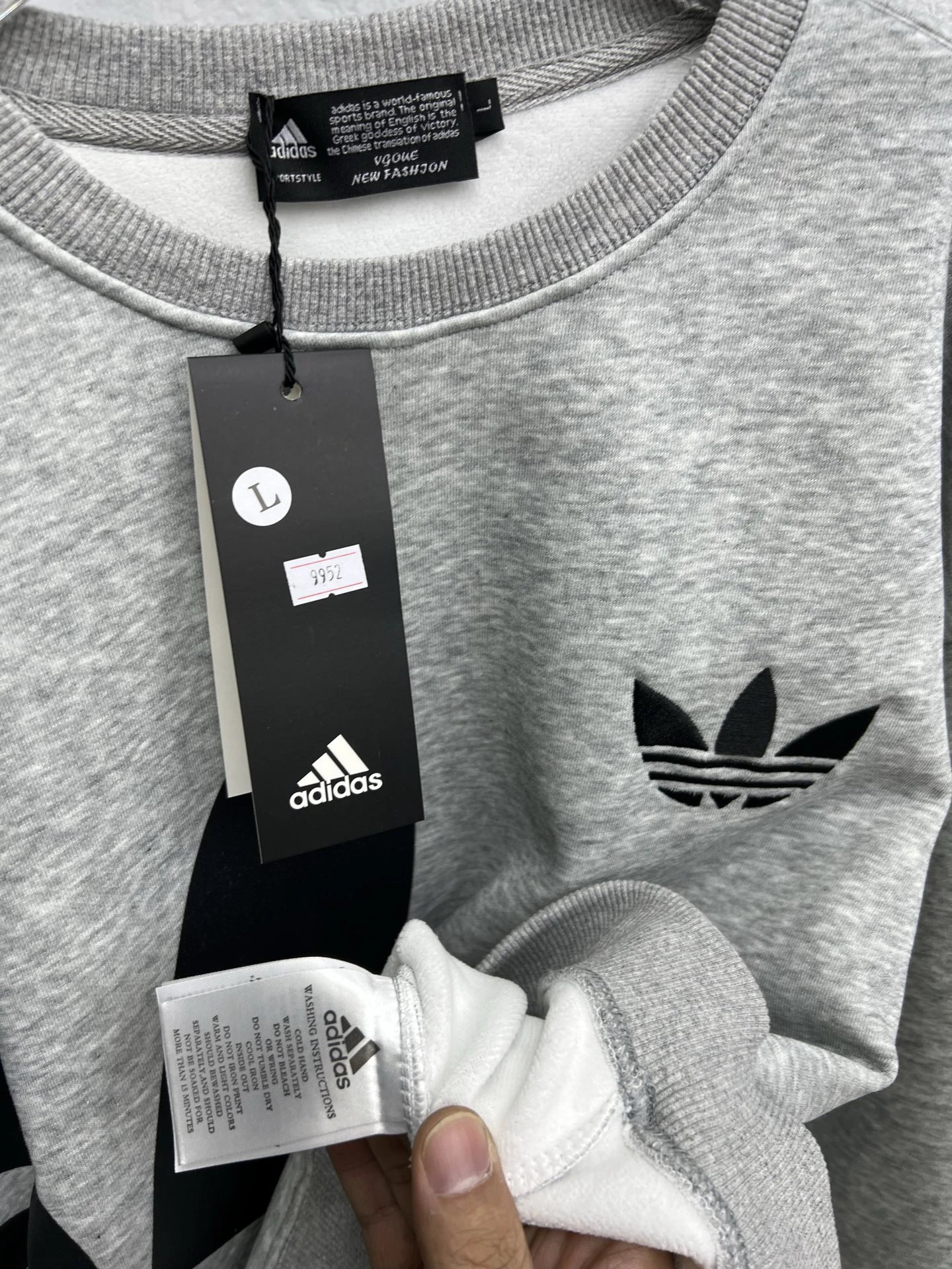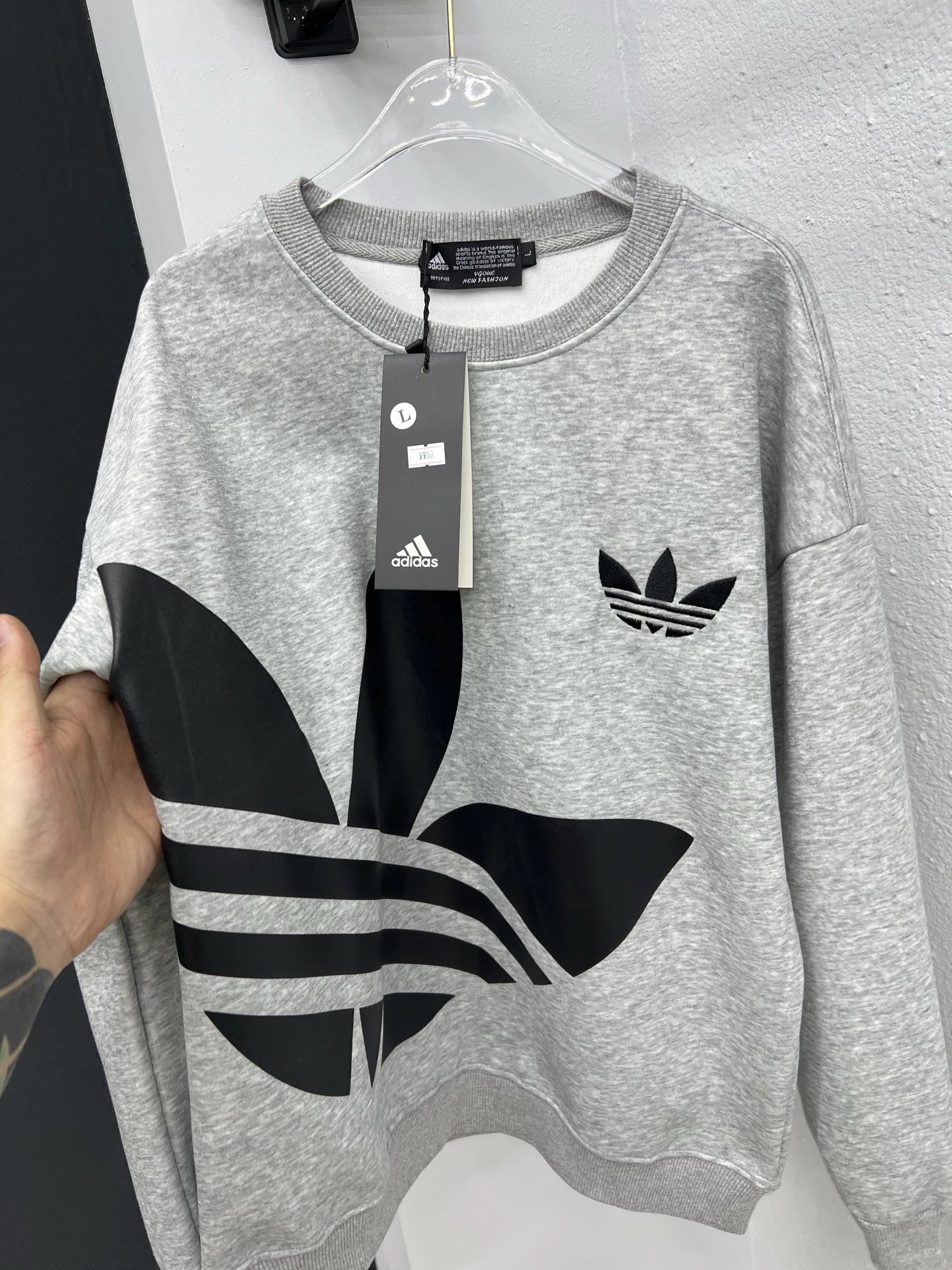 Adidas Winter Fleece-Lined Crewneck Sweatshirt offers cozy warmth for cold days. Soft fleece lining, classic crewneck design. Sizes: L, XL, 2XL, 3XL, 4XL.