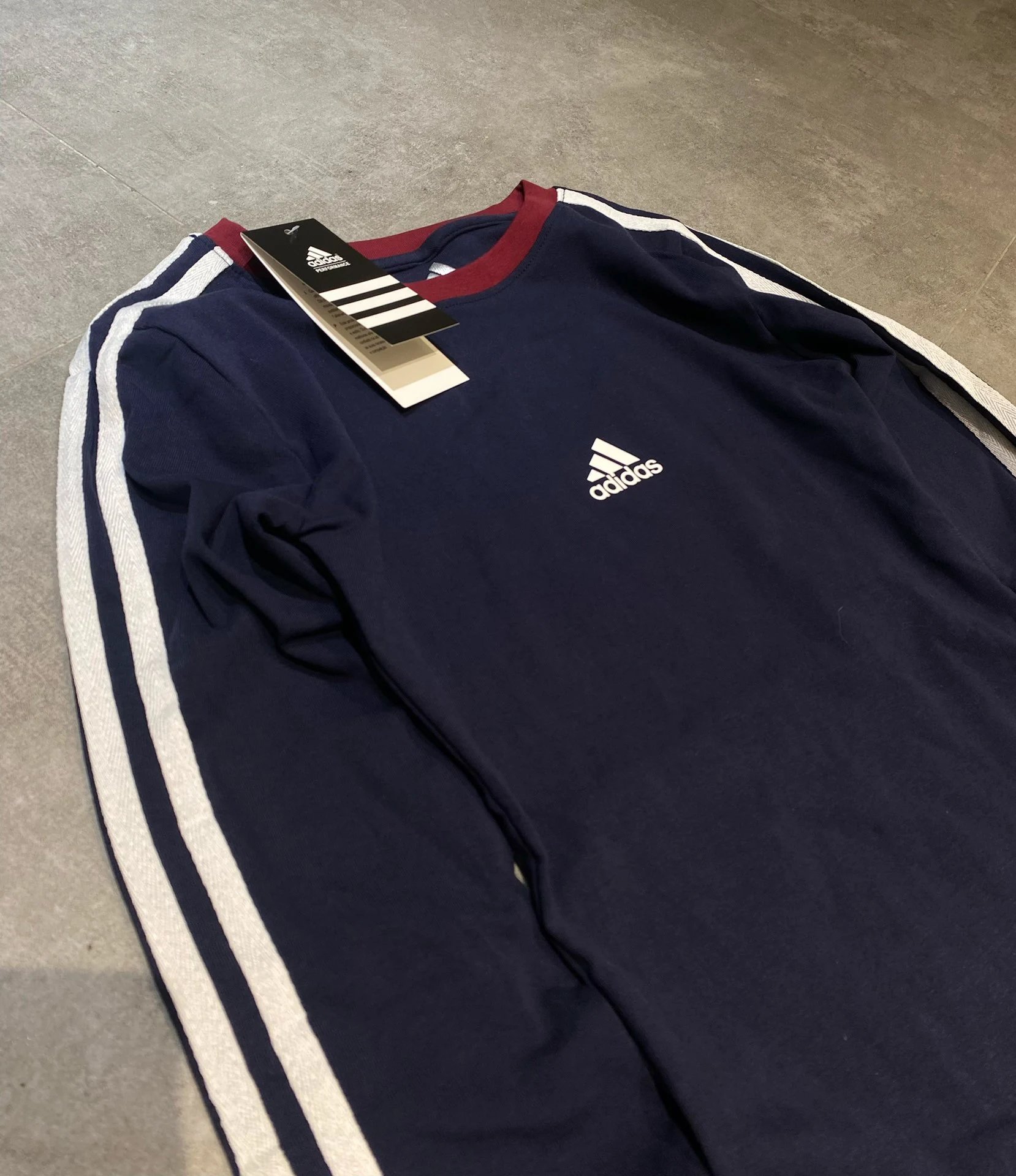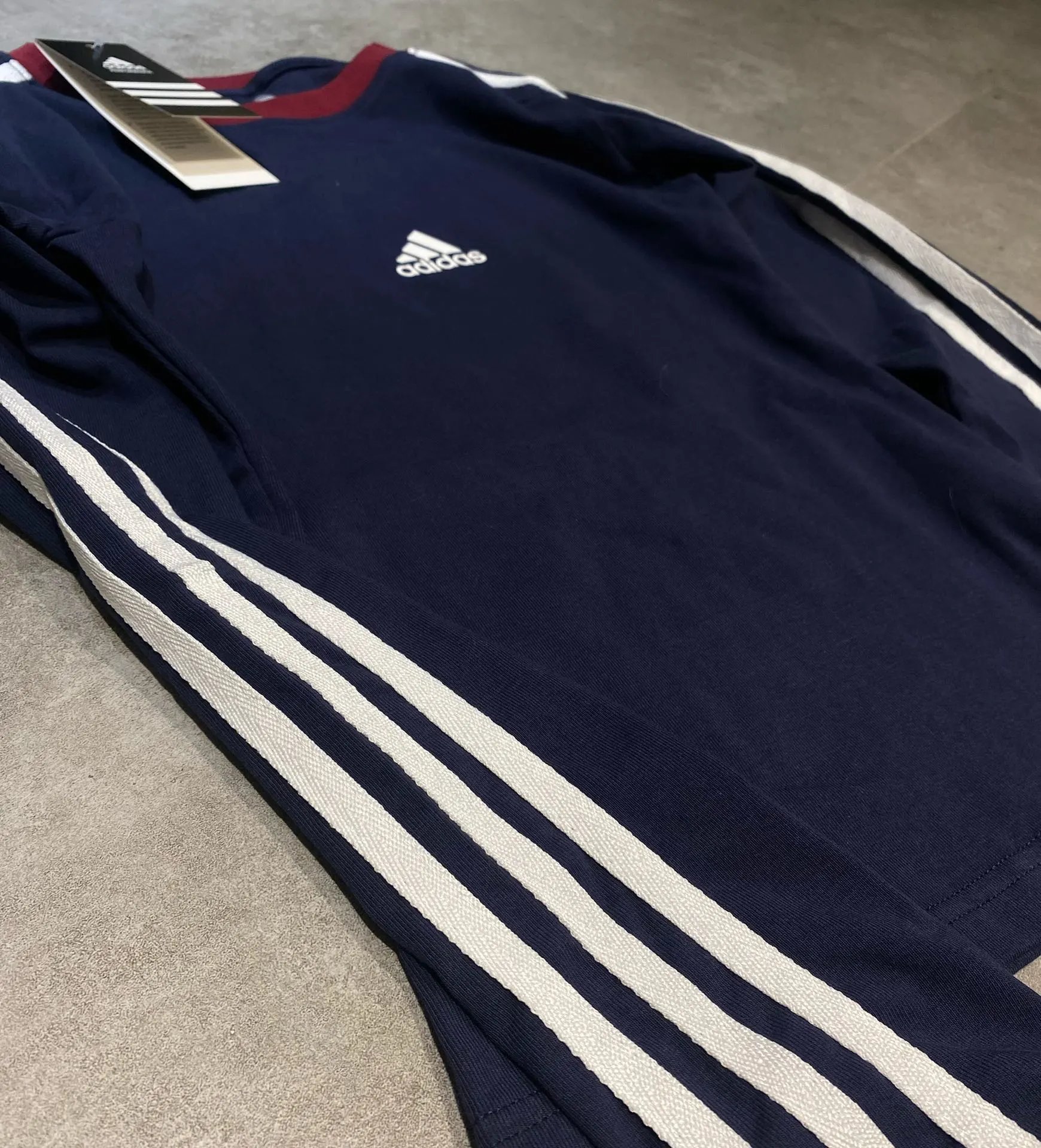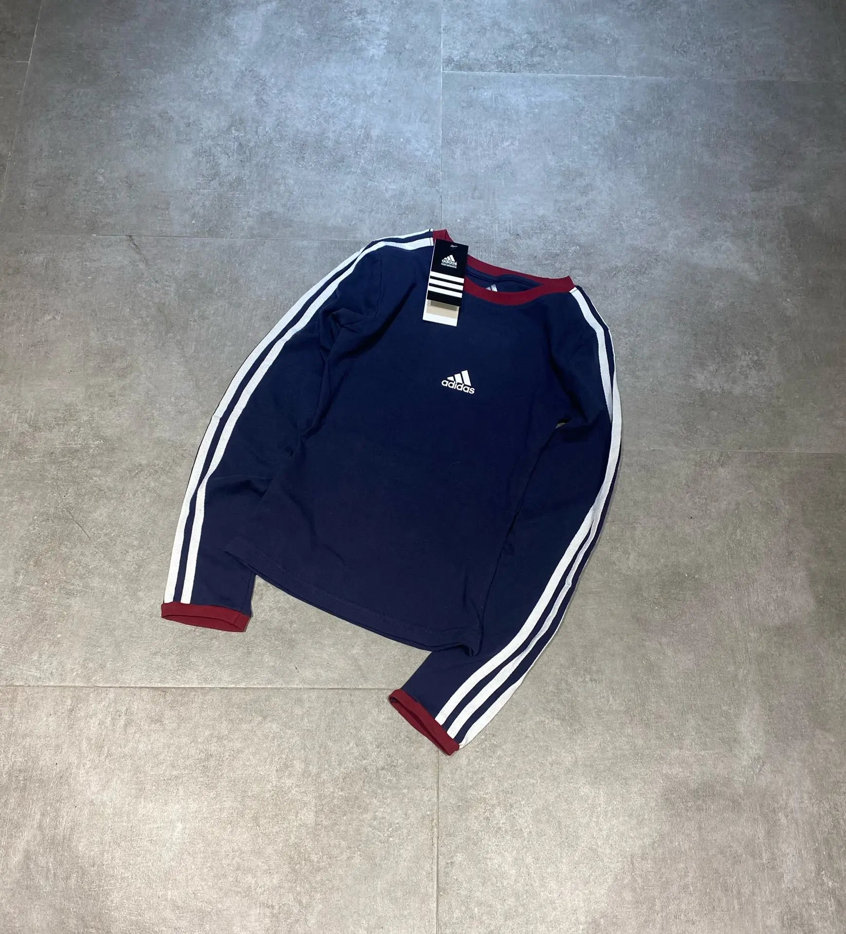 Adidas 3-Stripes Vintage Navy Cotton Slim Fit Unisex Sweatshirt - long sleeve, round neck, stretchy & short style.
