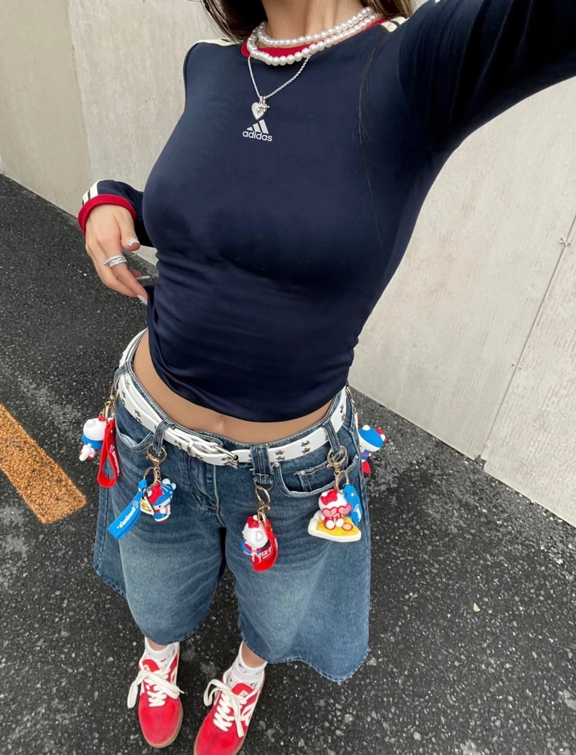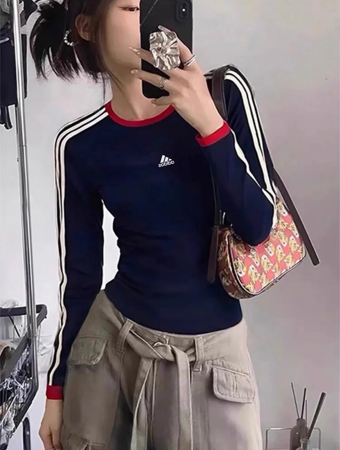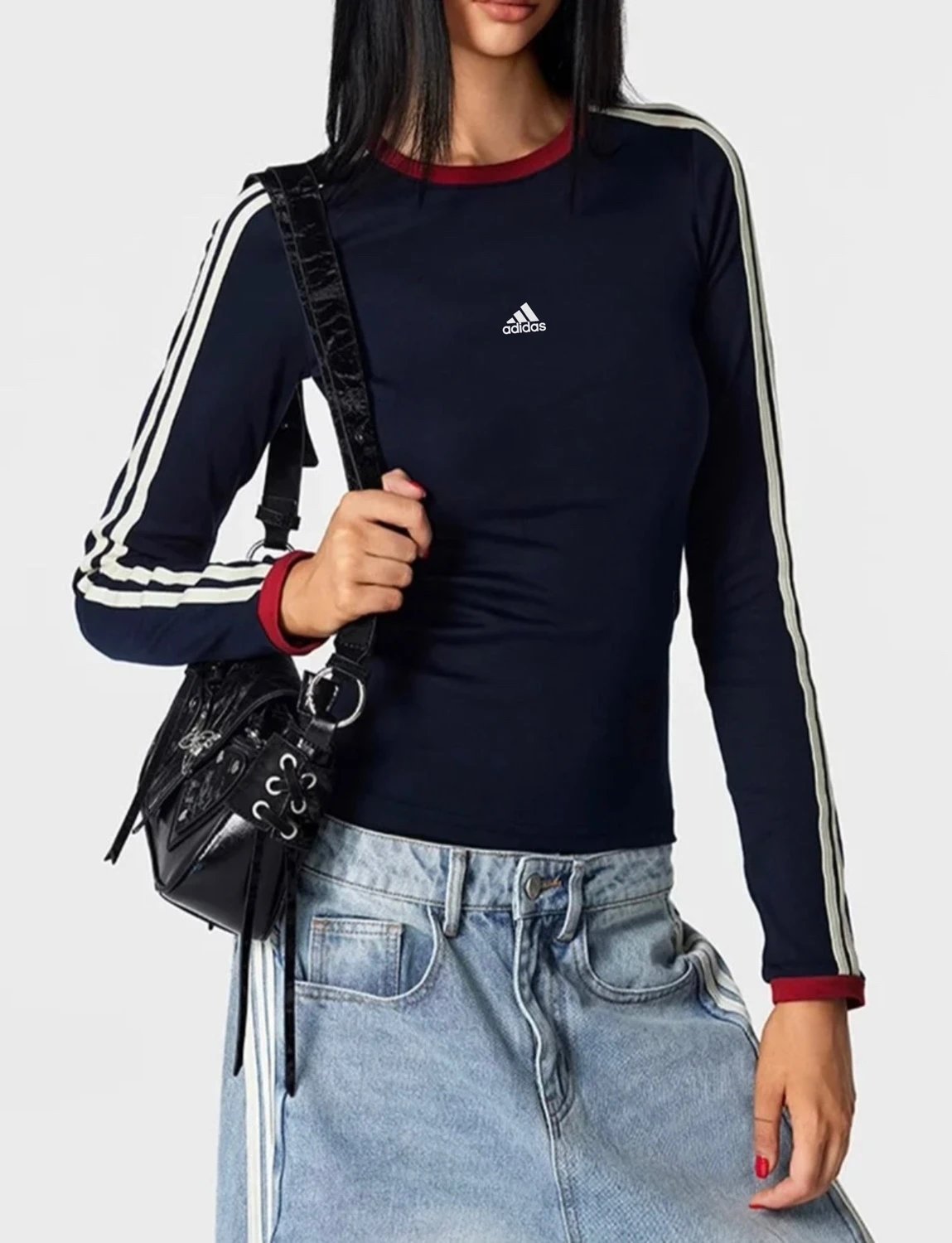 Adidas 3-Stripes Vintage Navy Cotton Slim Fit Unisex Sweatshirt - long sleeve, round neck, stretchy & short style.