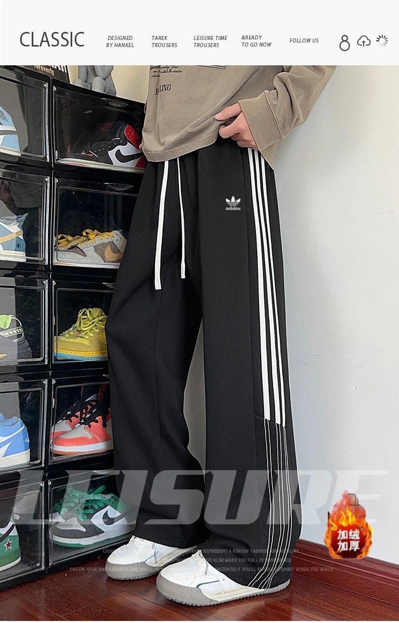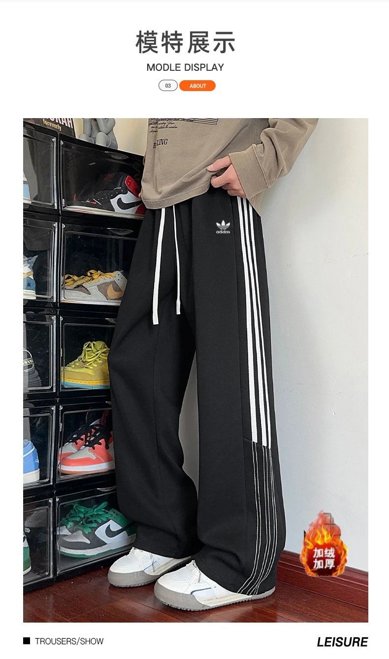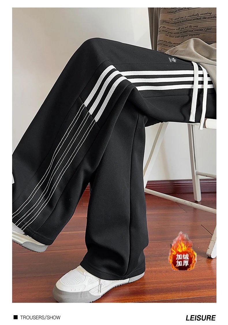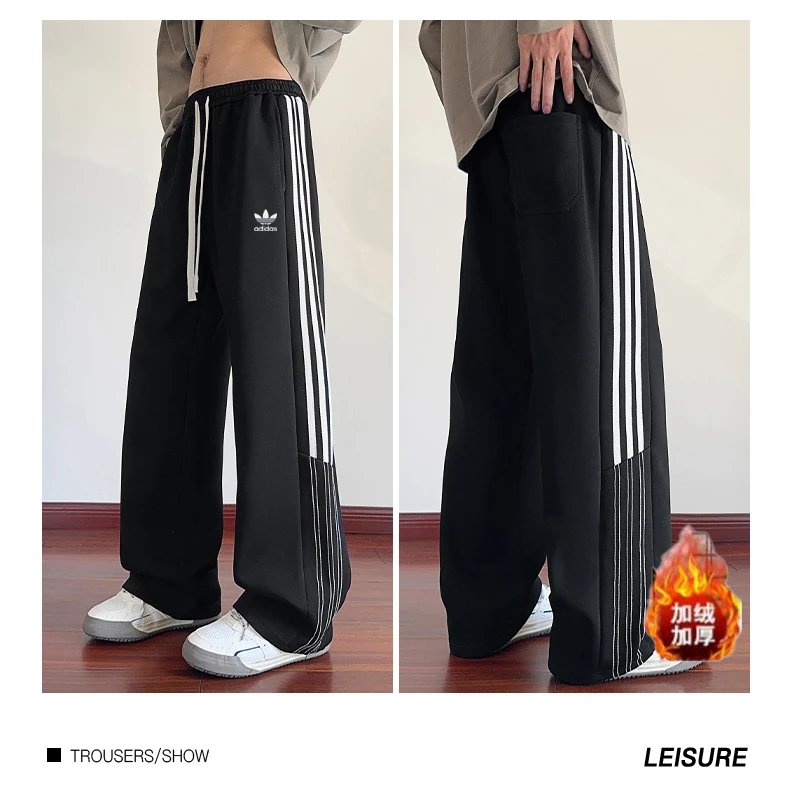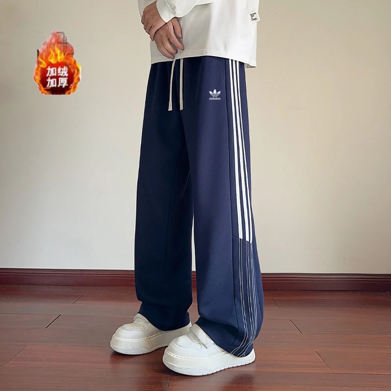 Adidas Winter Fleece-Lined Colorblock Sports Pants. Side stripes, embroidered logo, unisex straight fit.