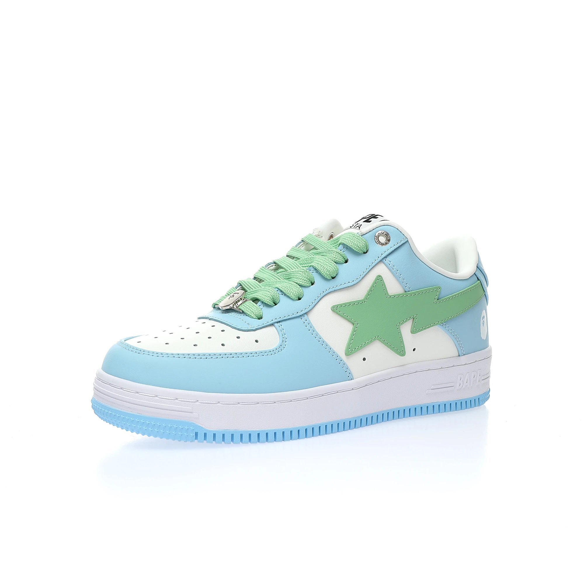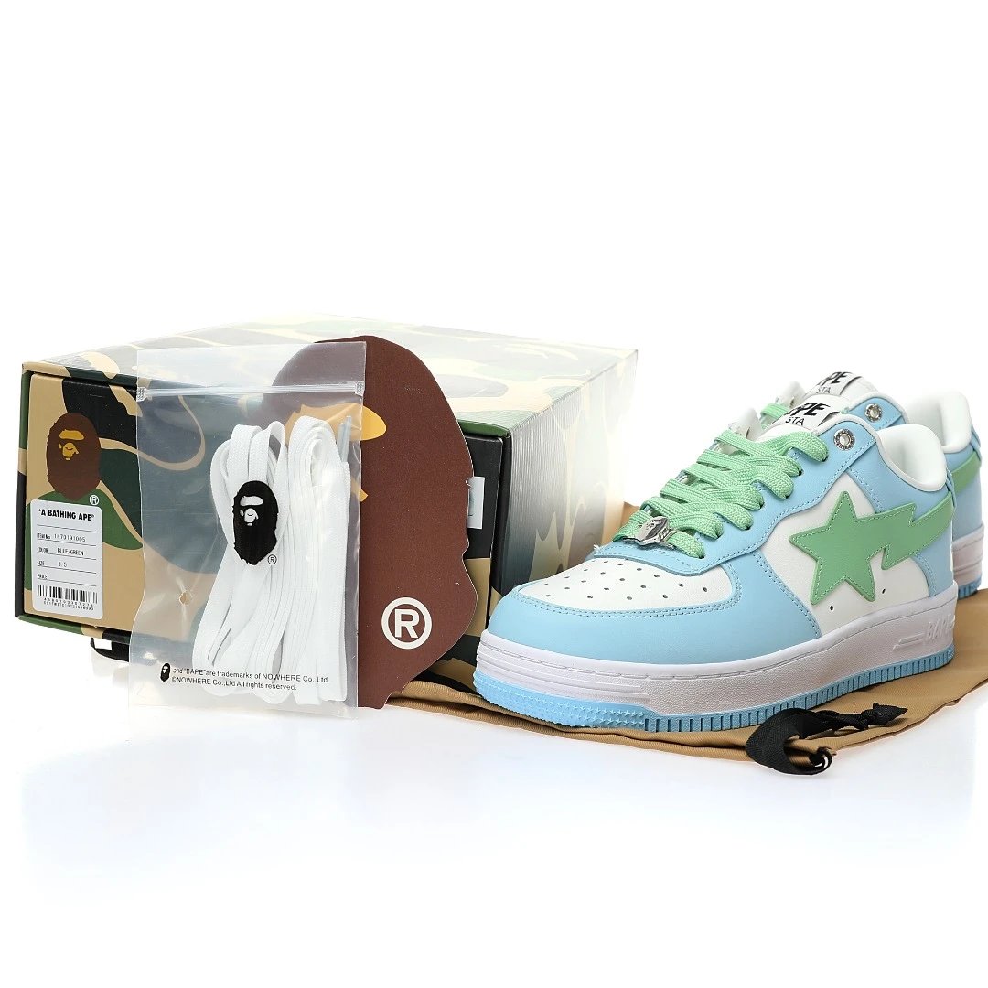 BAPE Sta Low White Sky Blue Light Green Leather Casual Sneakers for Men & Women