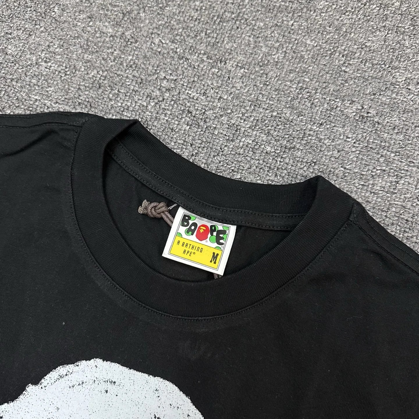 BAPE FW25 T-Shirts feature hand-painted prints, crew neck, 270g linen-cotton fabric, unisex fit. Black & white, size 2XL.