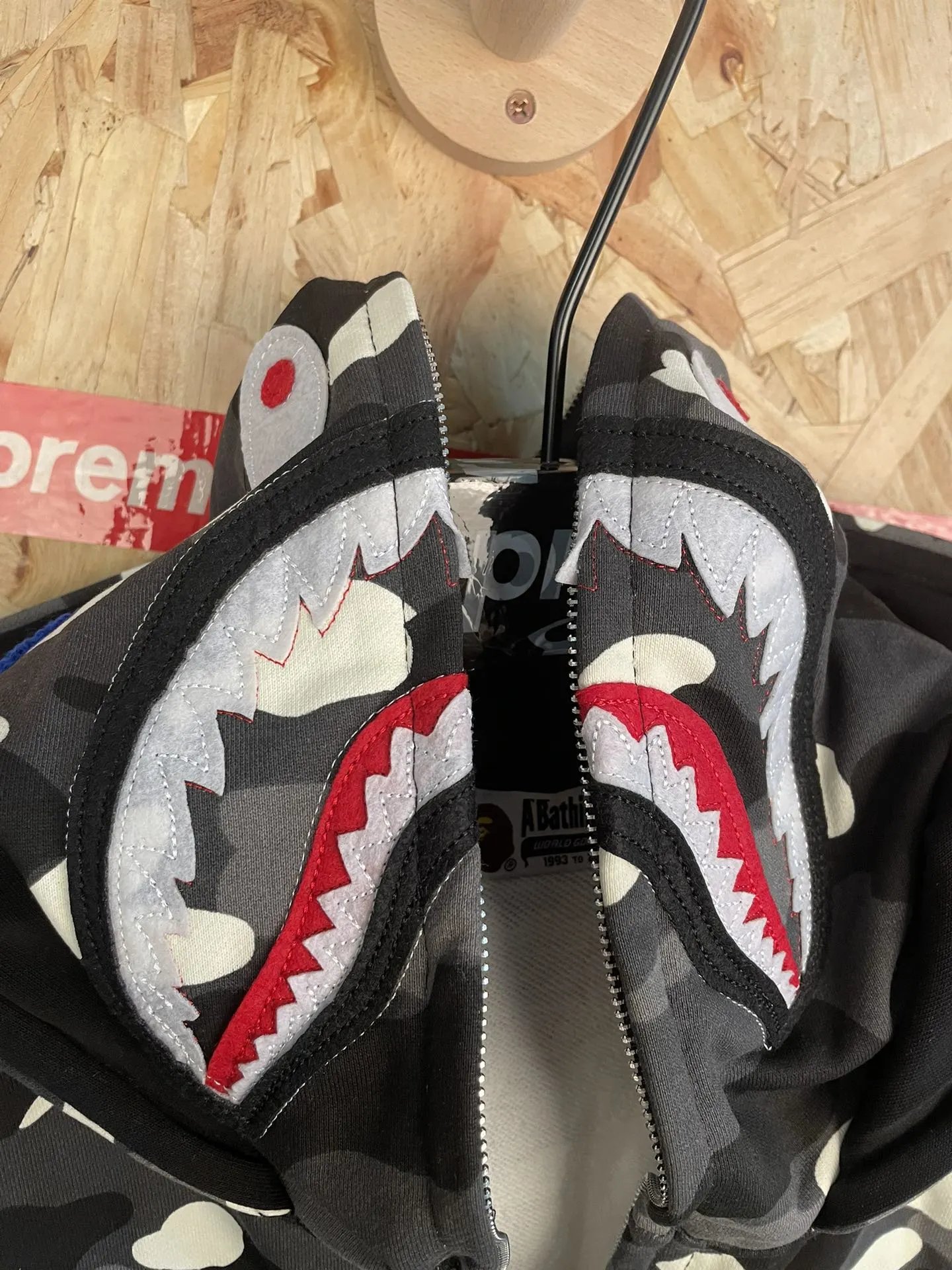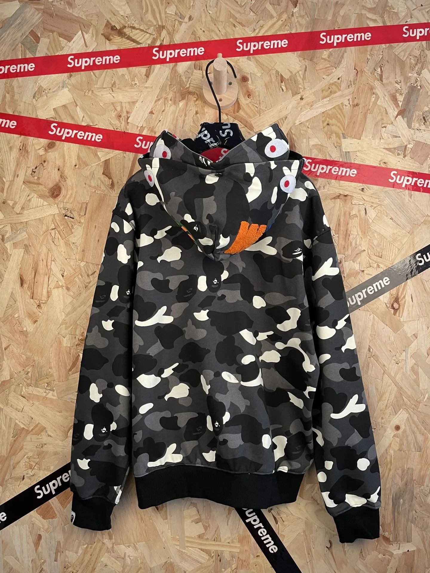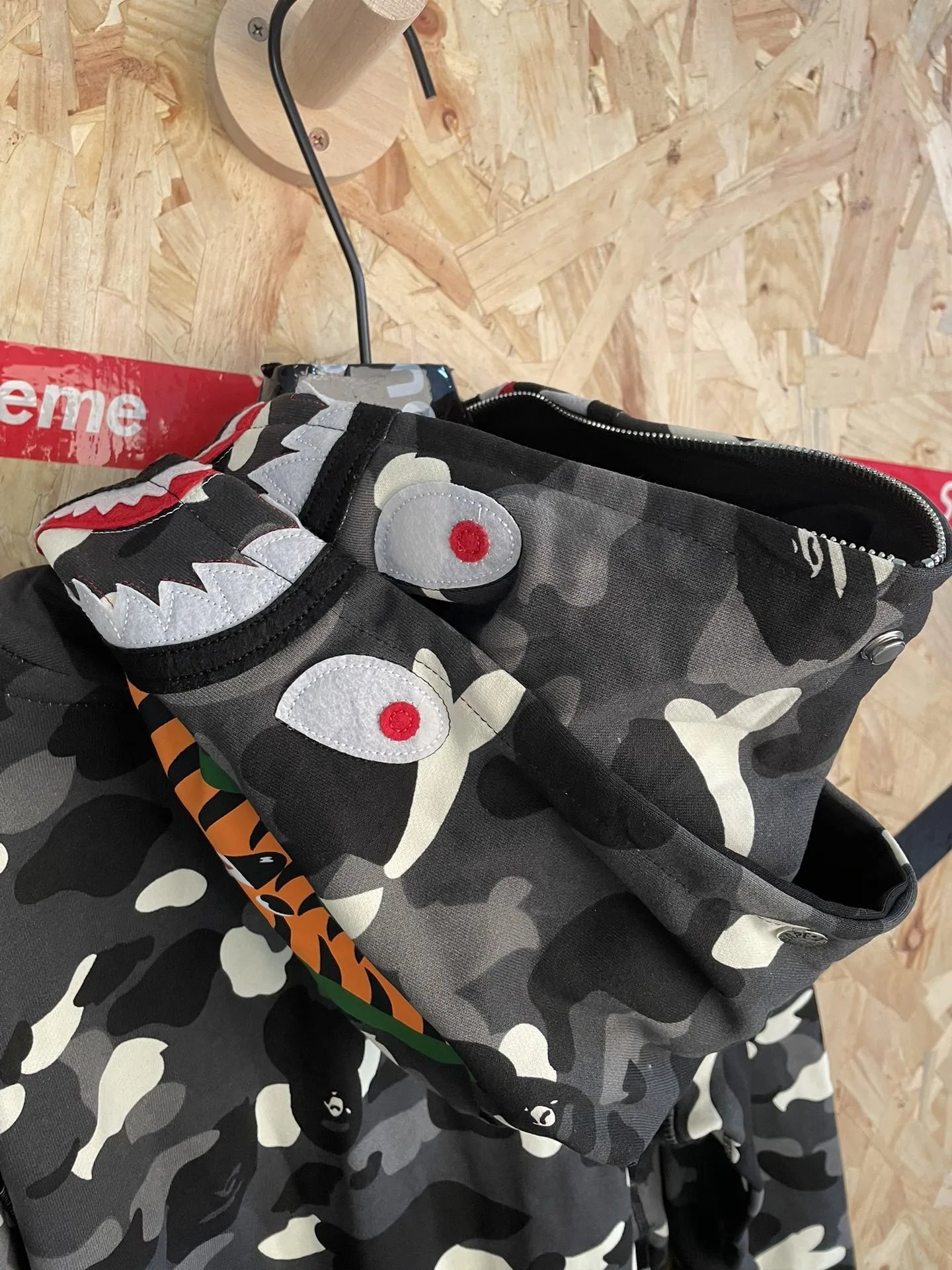 Bape American Street Style Black Glow-in-the-Dark Double Hood Shark Zip Hoodie